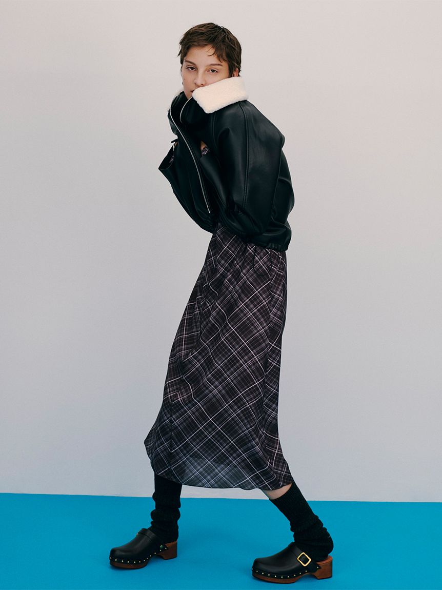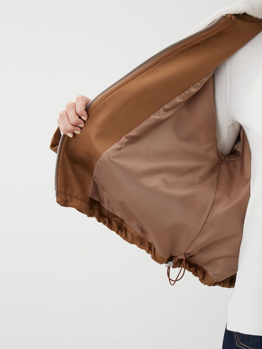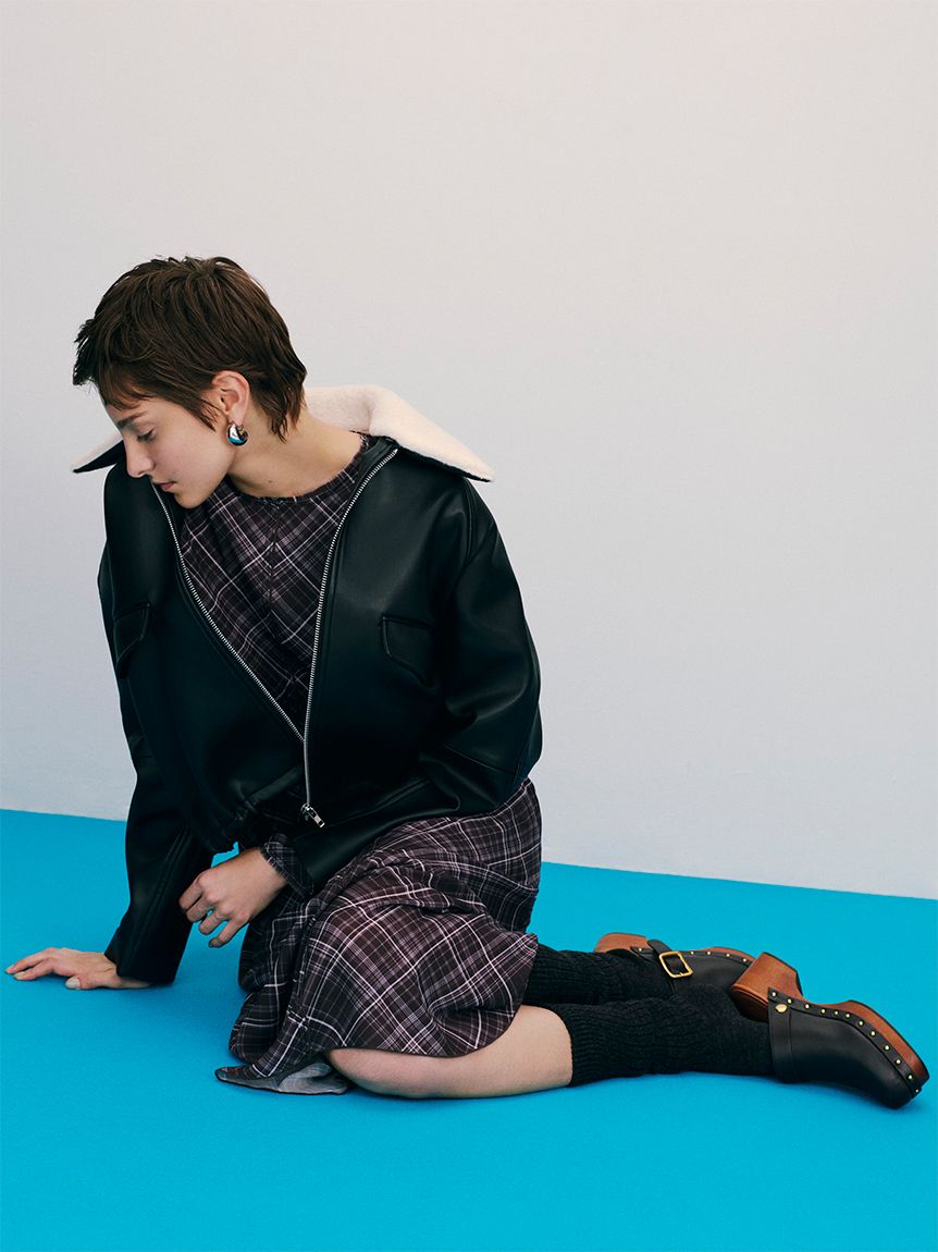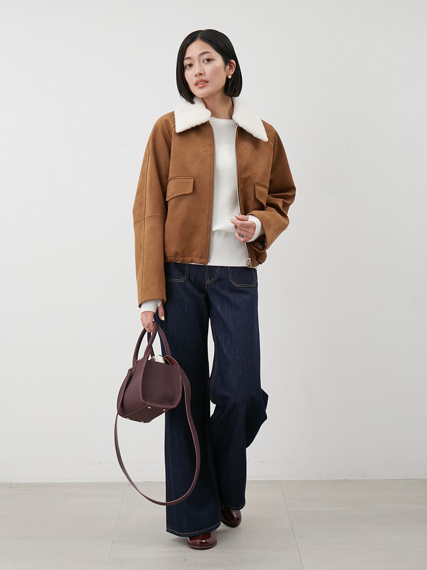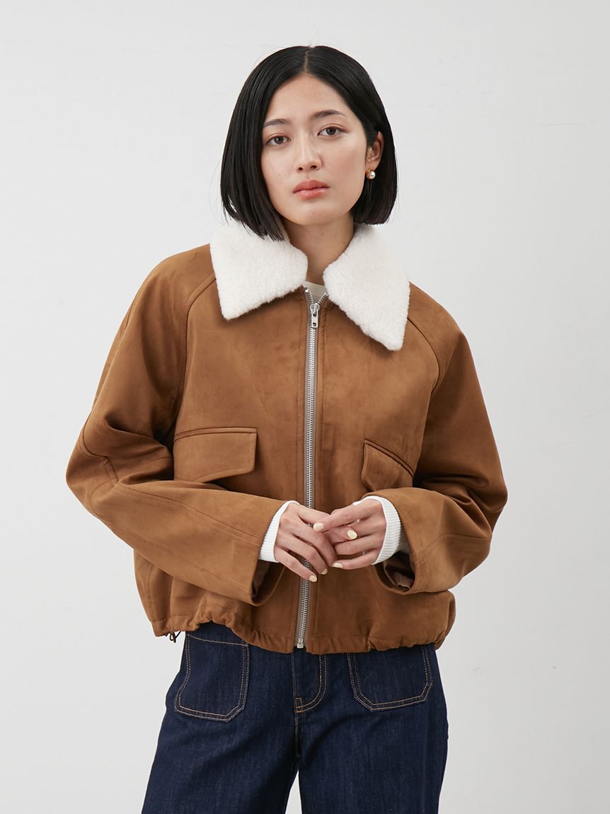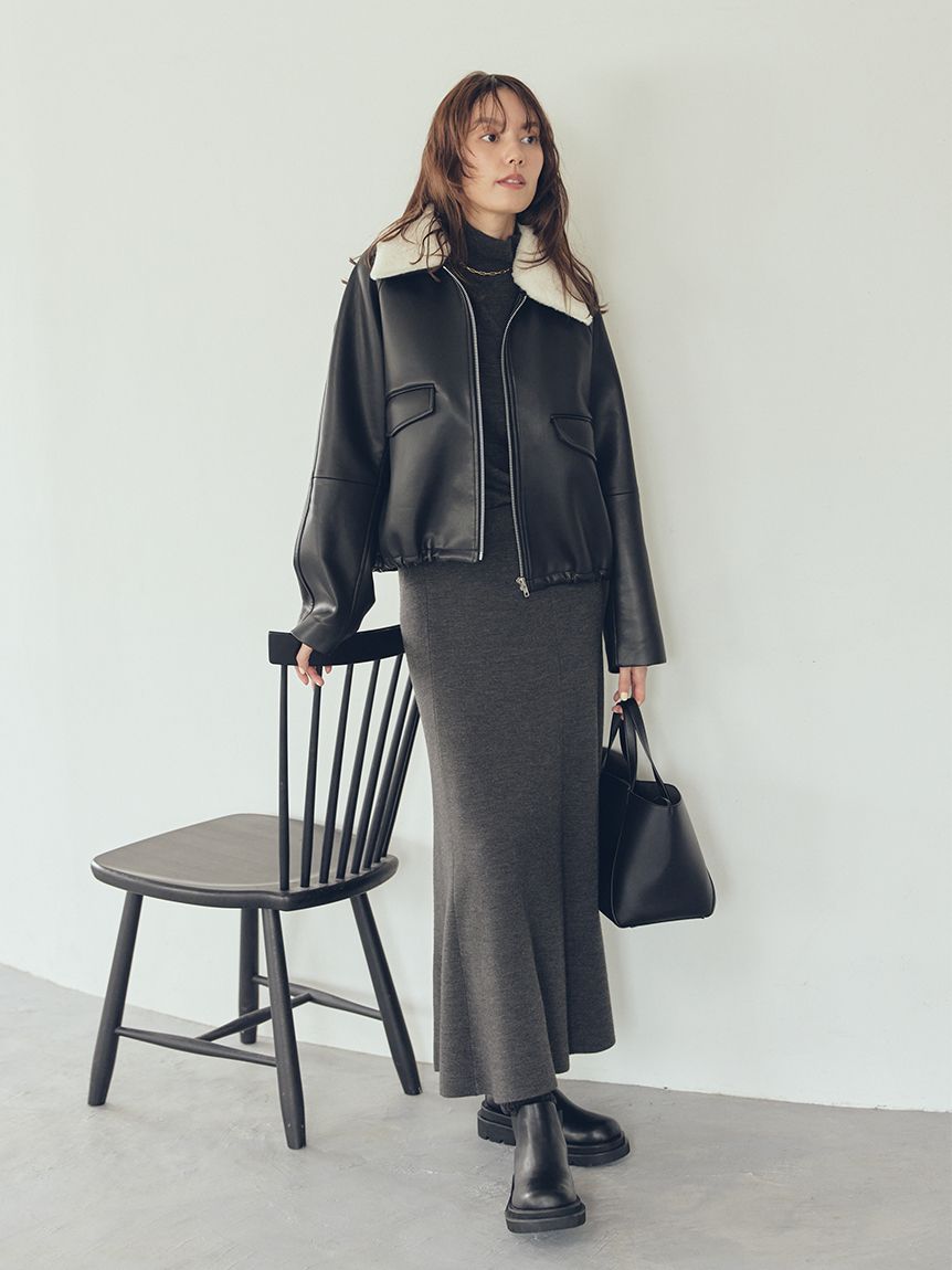 【本季注目趨勢,人造皮革可拆卸毛絨領設計,為飛行夾克增添俏麗風采】