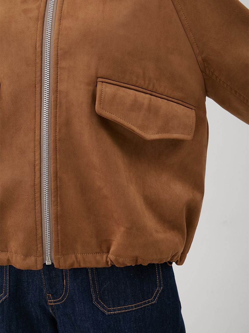 今秋必備潮流單品——人造皮革飛行夾克。毛絨領口採用可拆卸鈕扣設計,實現雙面穿搭變換風格。卸下領片即化身簡約同色立領款式。