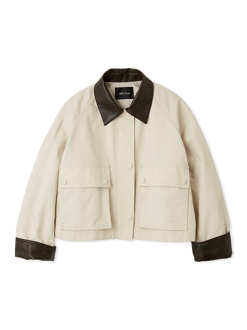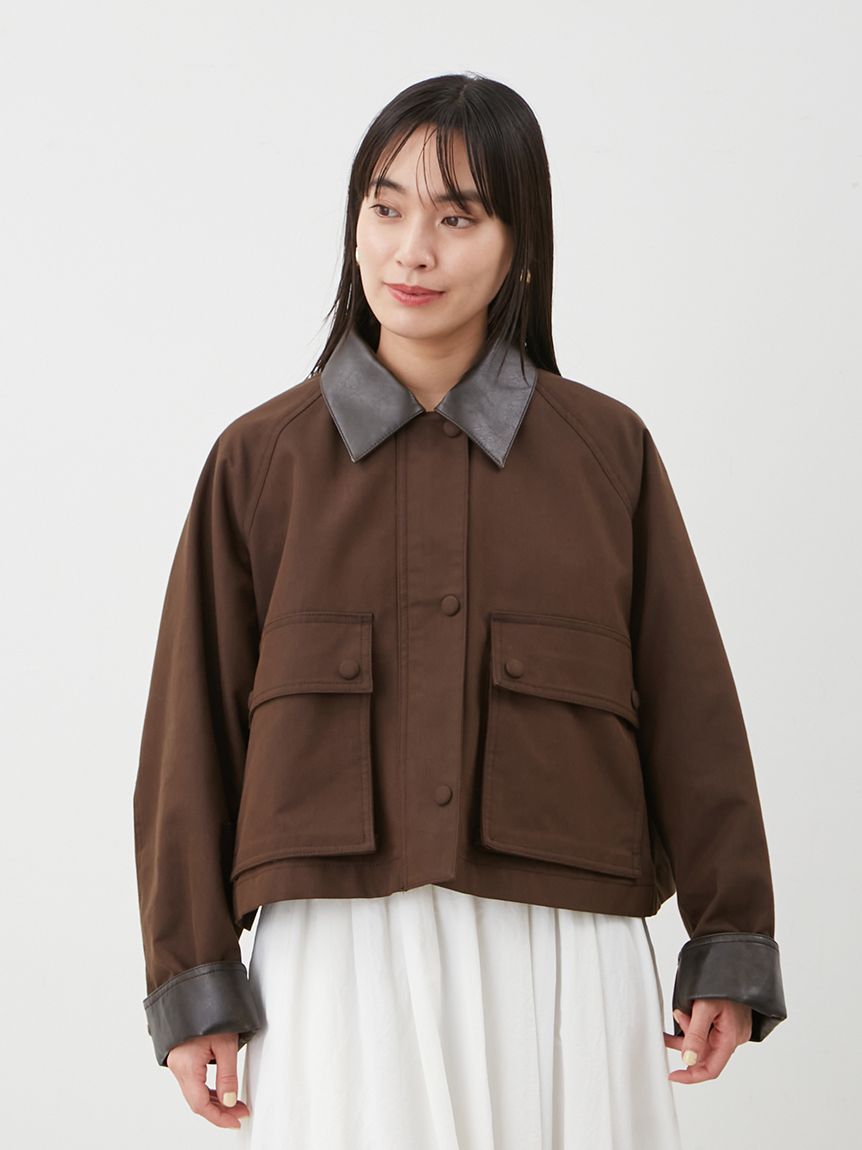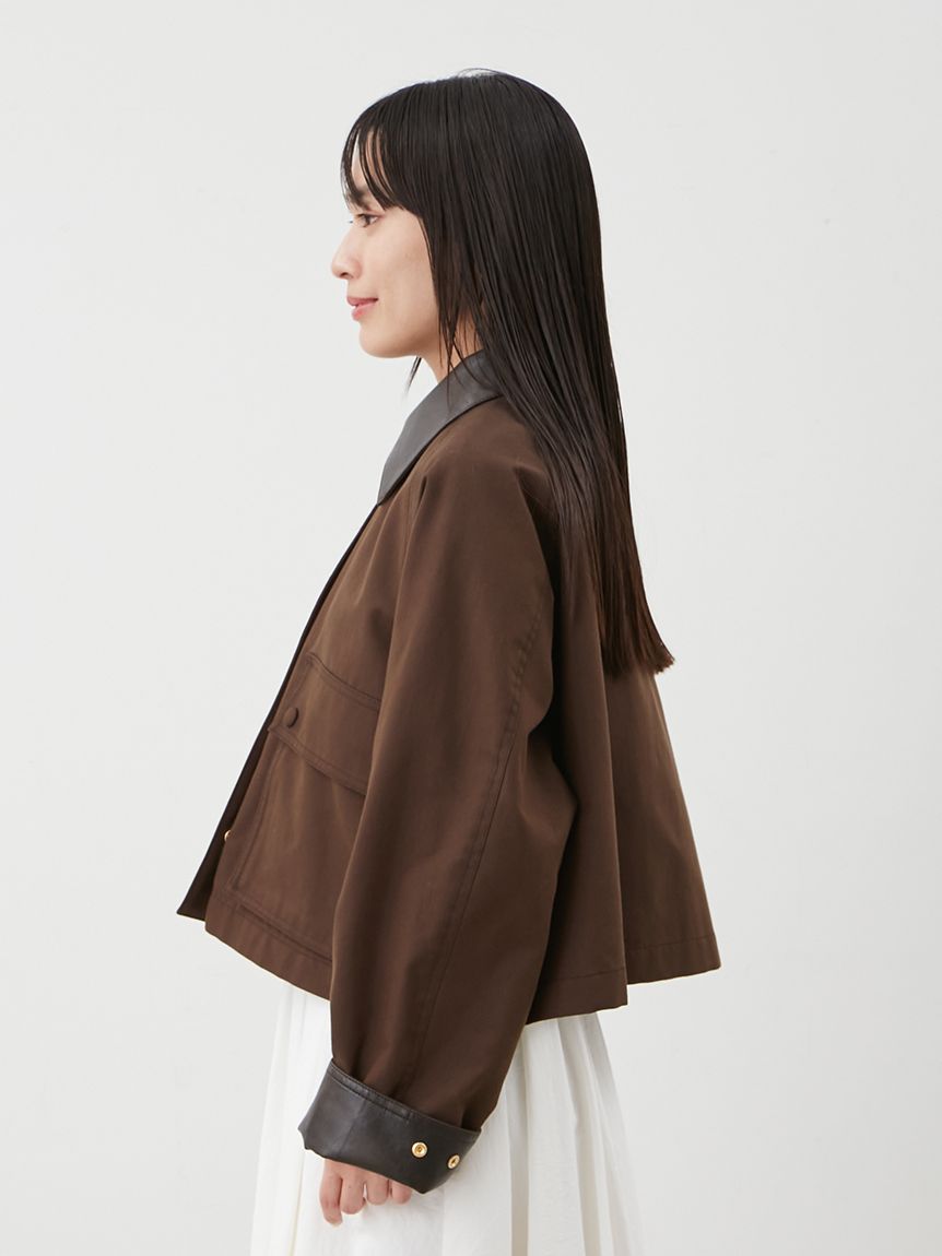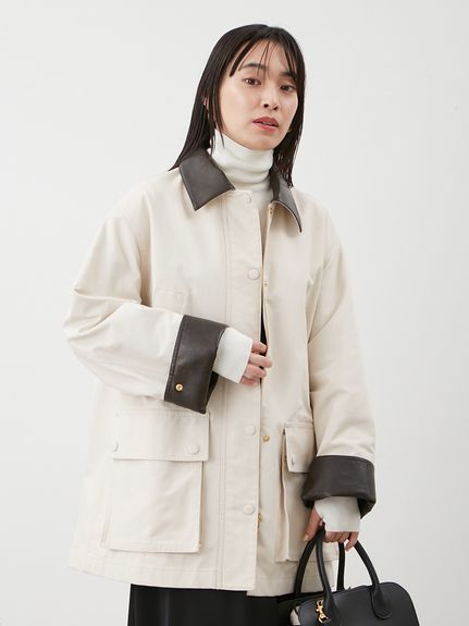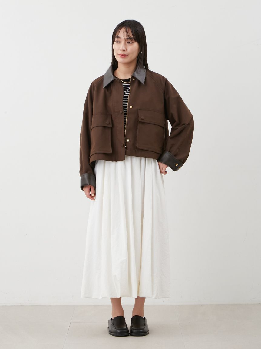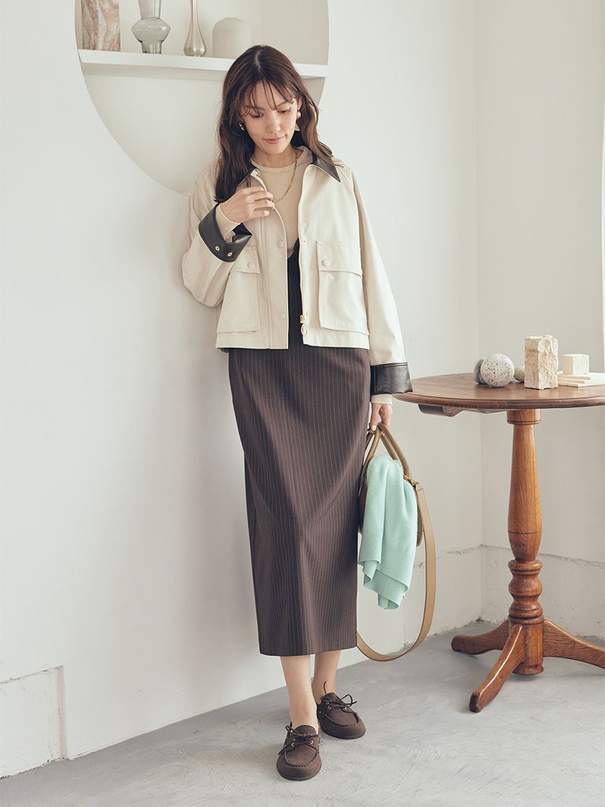 以流行的獵裝外套為基礎,採用類帆布材質,打造可輕鬆穿搭的大人風格外套。