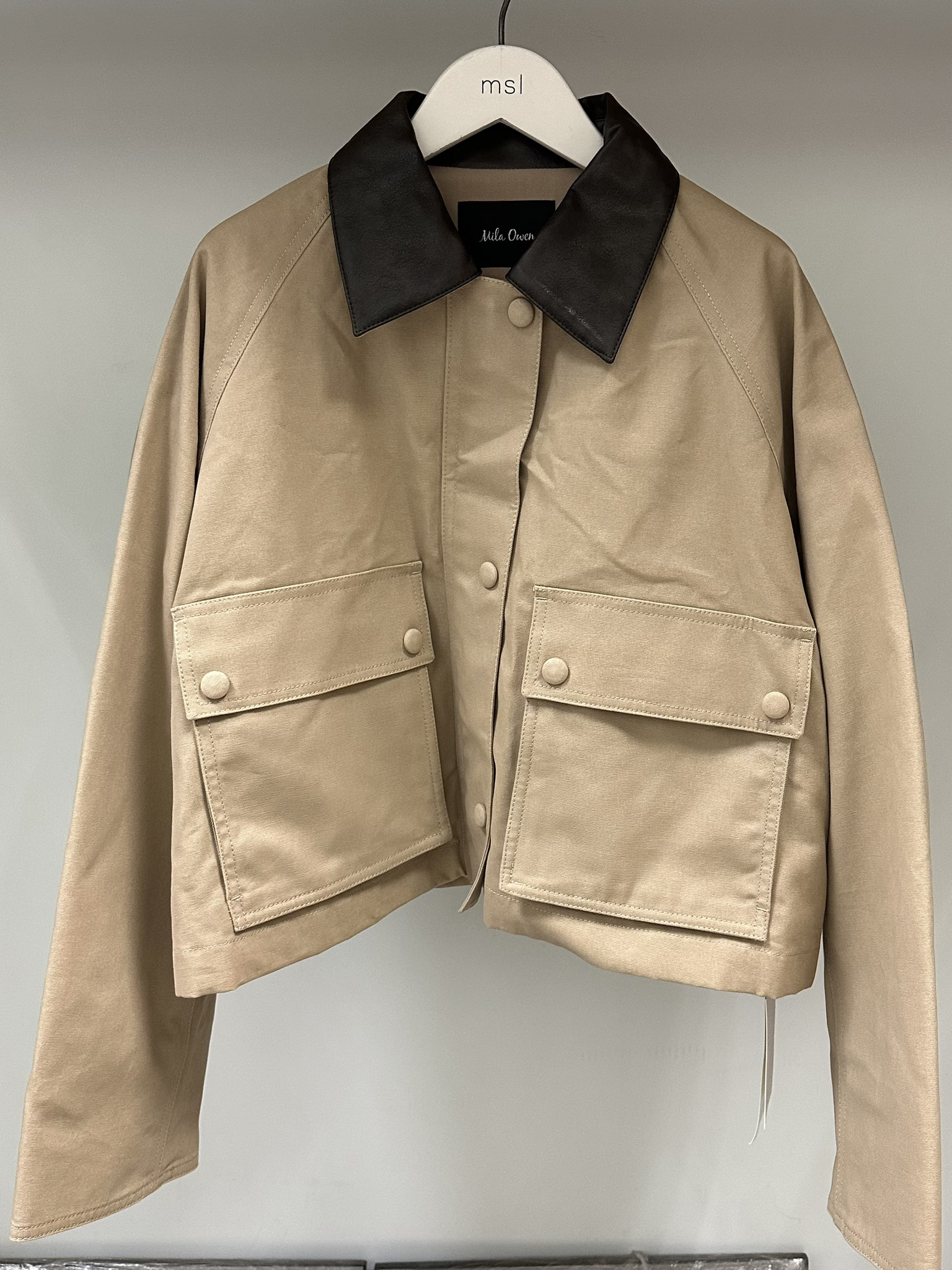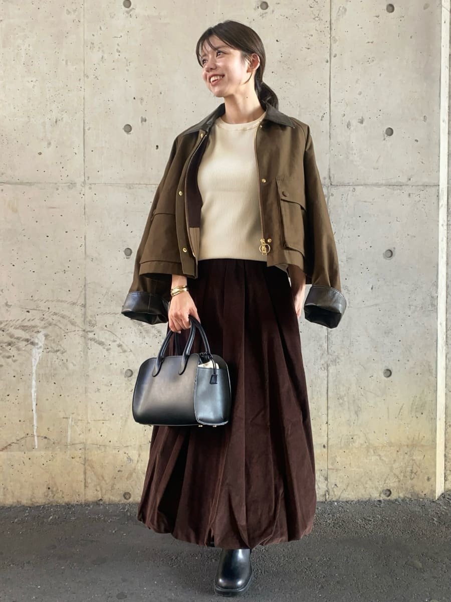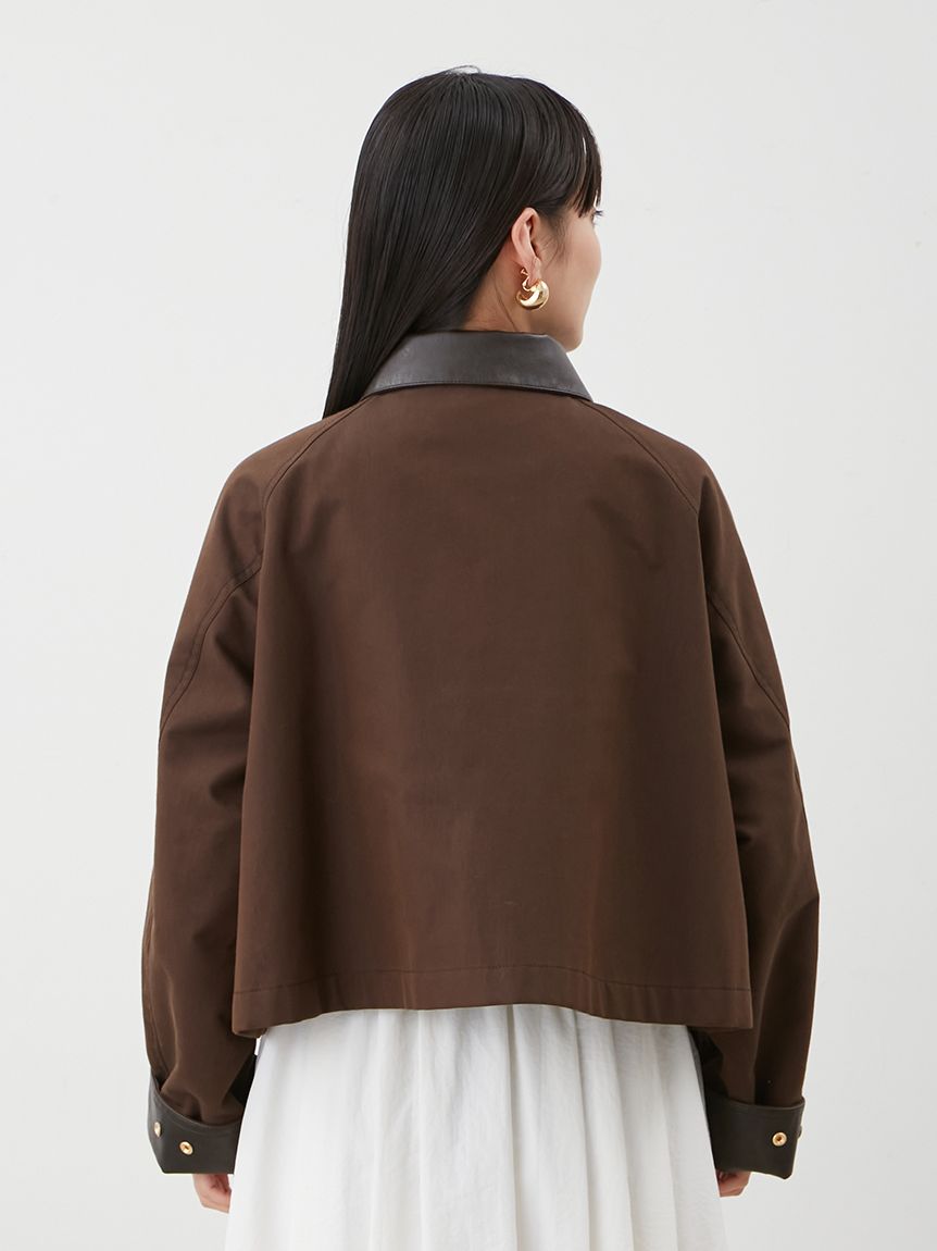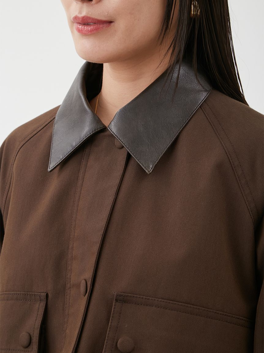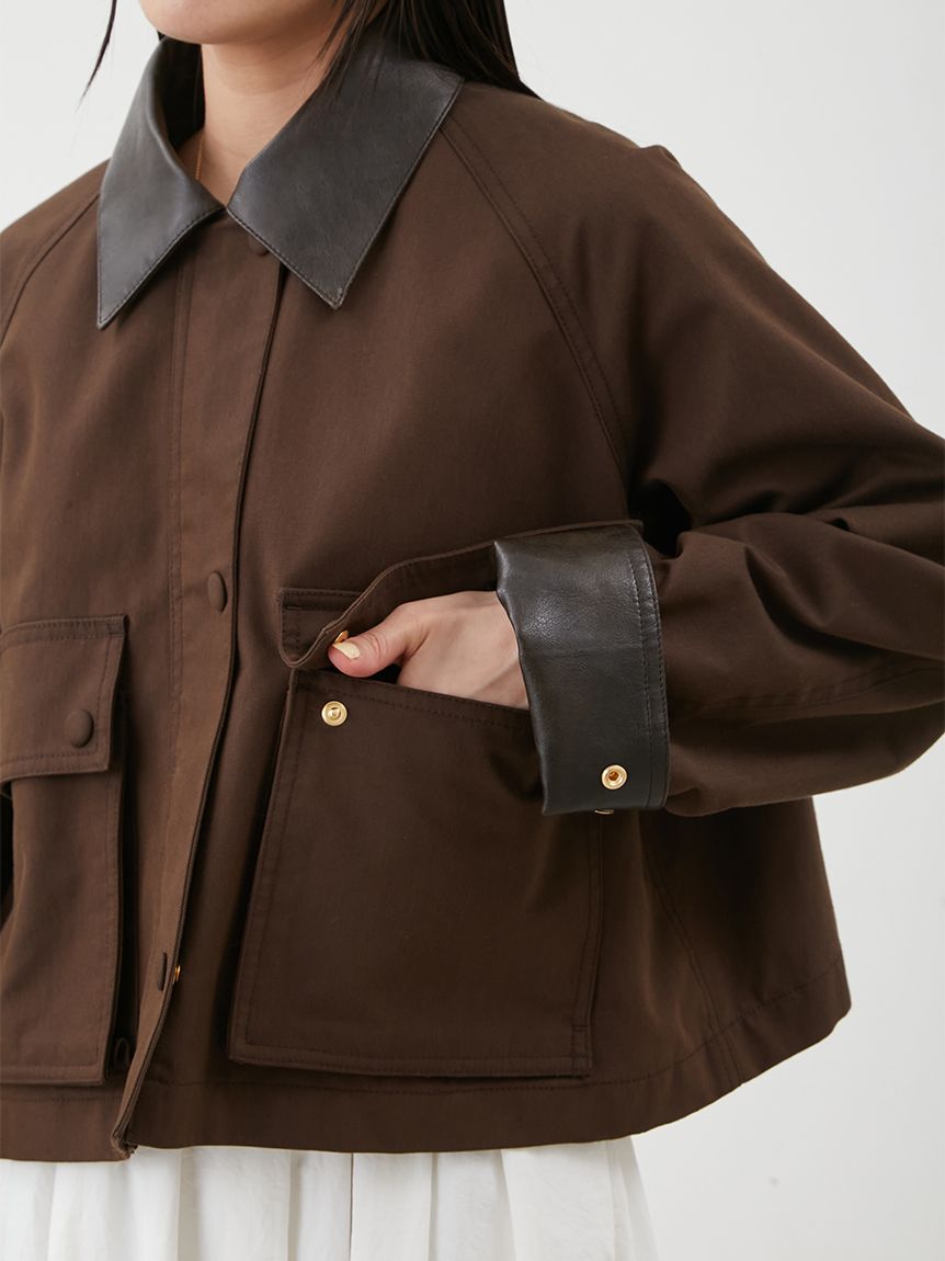 以流行的獵裝外套為基礎,採用類帆布材質,打造可輕鬆穿搭的大人風格外套。