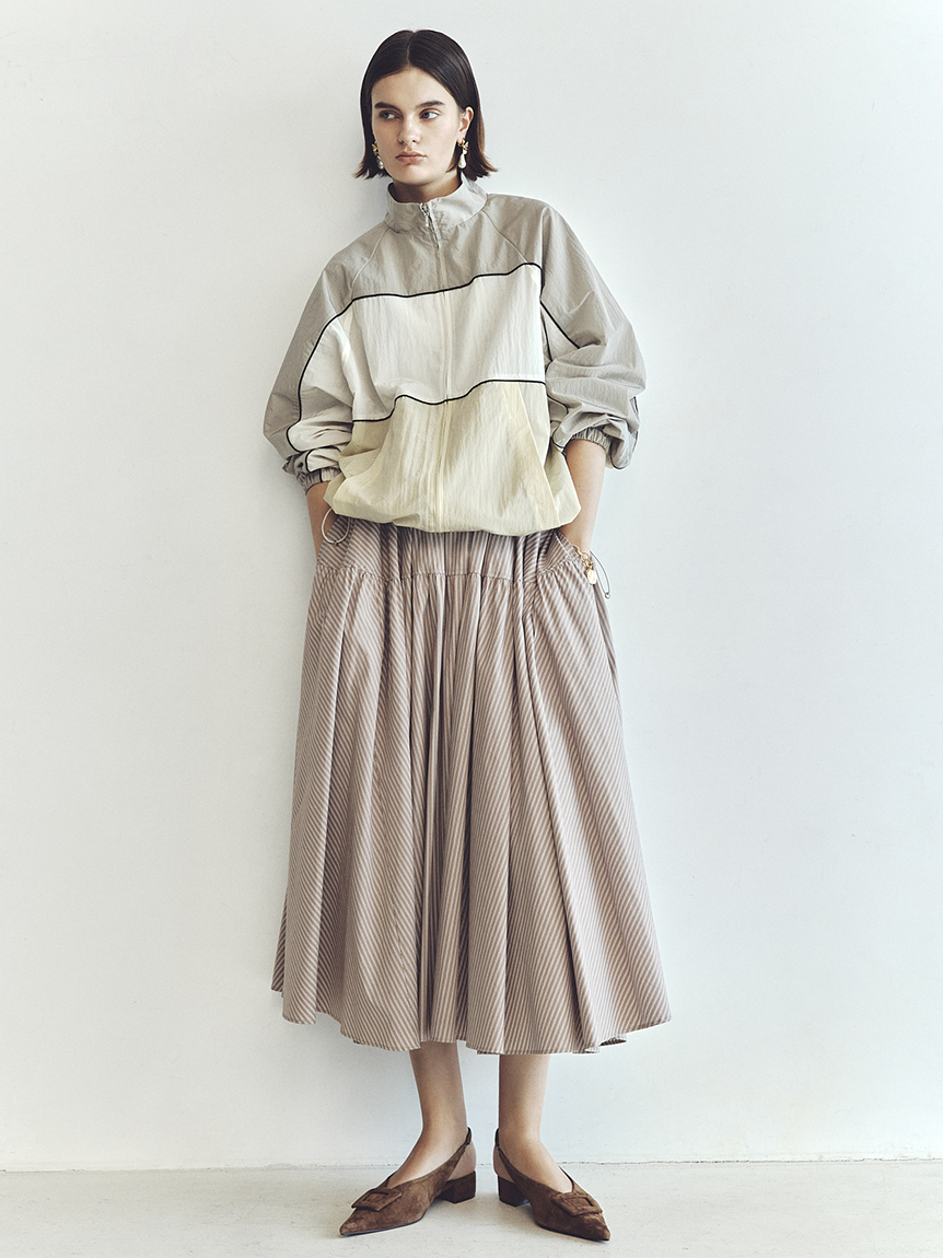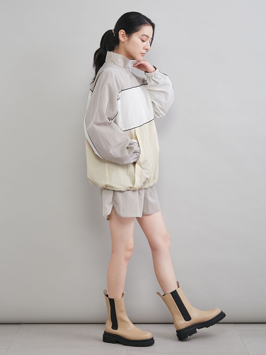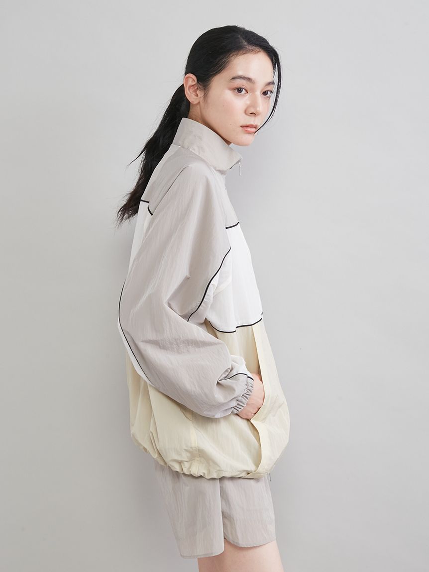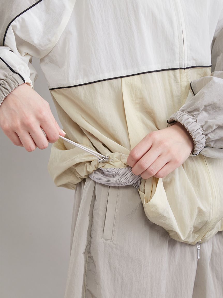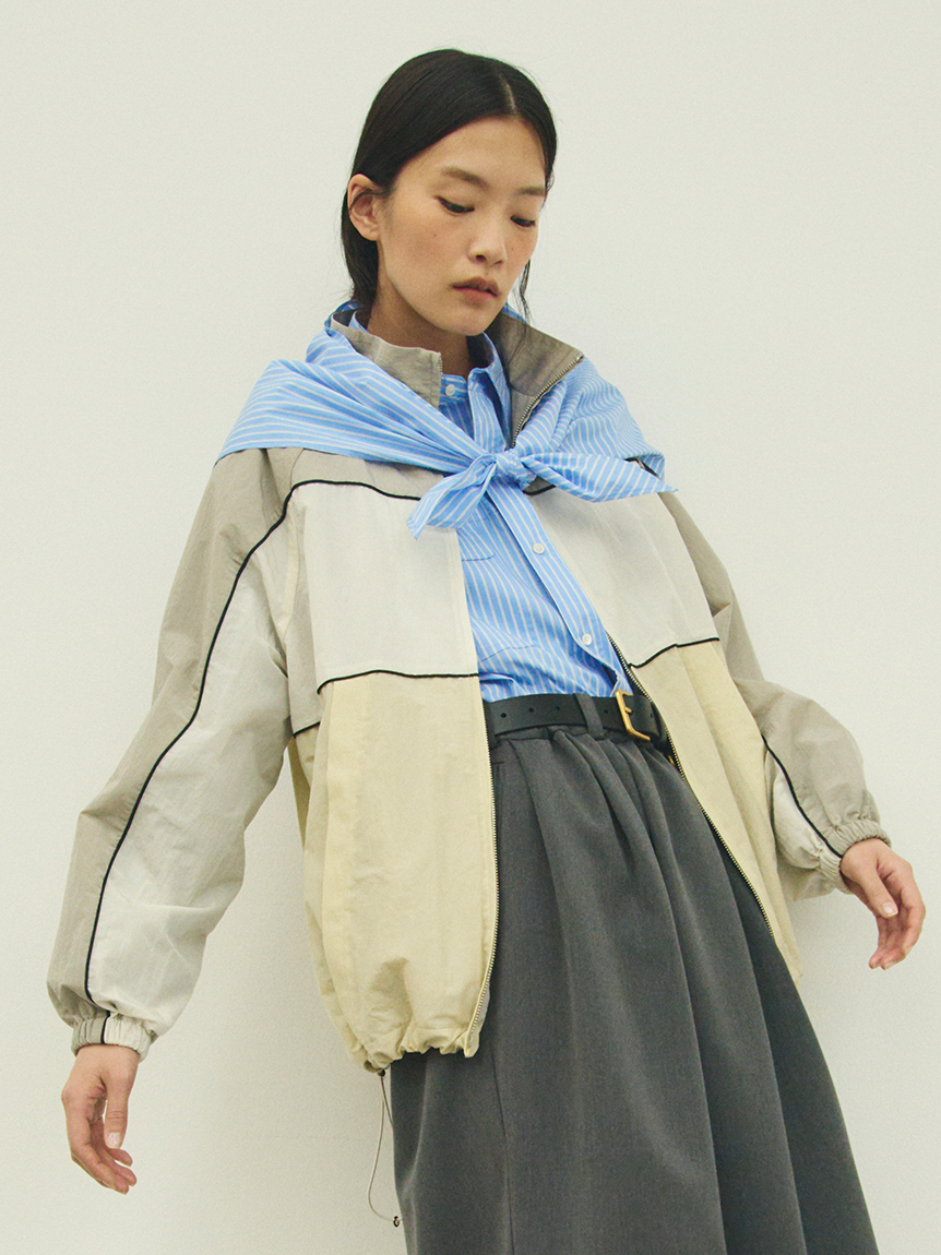 寬鬆女版型,裾部可用抽繩收束呈圓潤輪廓,袖口有彈性設計,可隨意捲起。