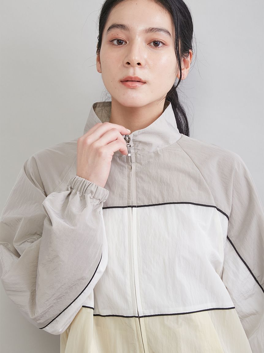 前襟雙拉鍊設計增添造型感,配色滾邊為設計亮點。