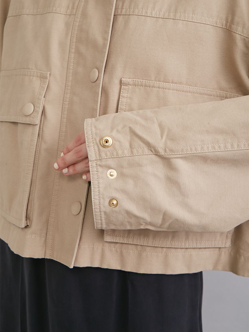 人氣工裝外套以短版剪裁與寬鬆帳篷式輪廓,營造女性化的俐落感。