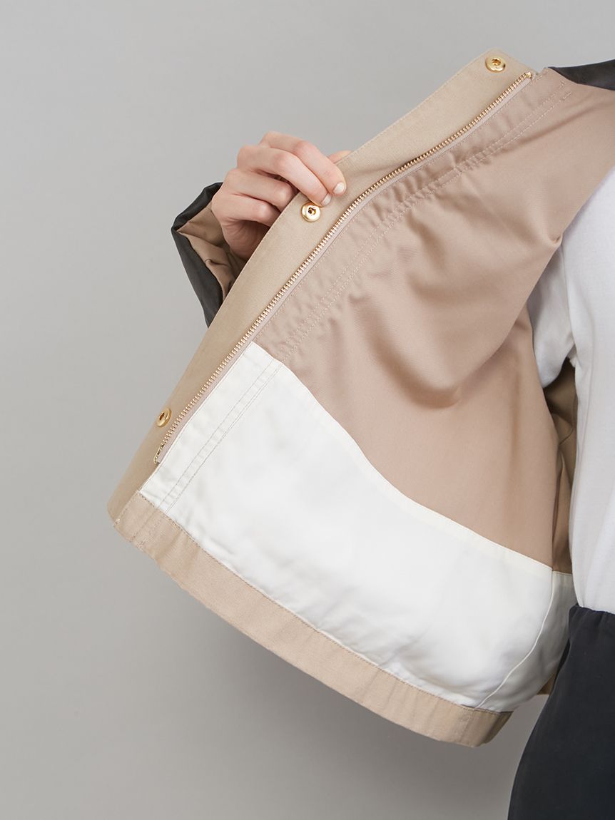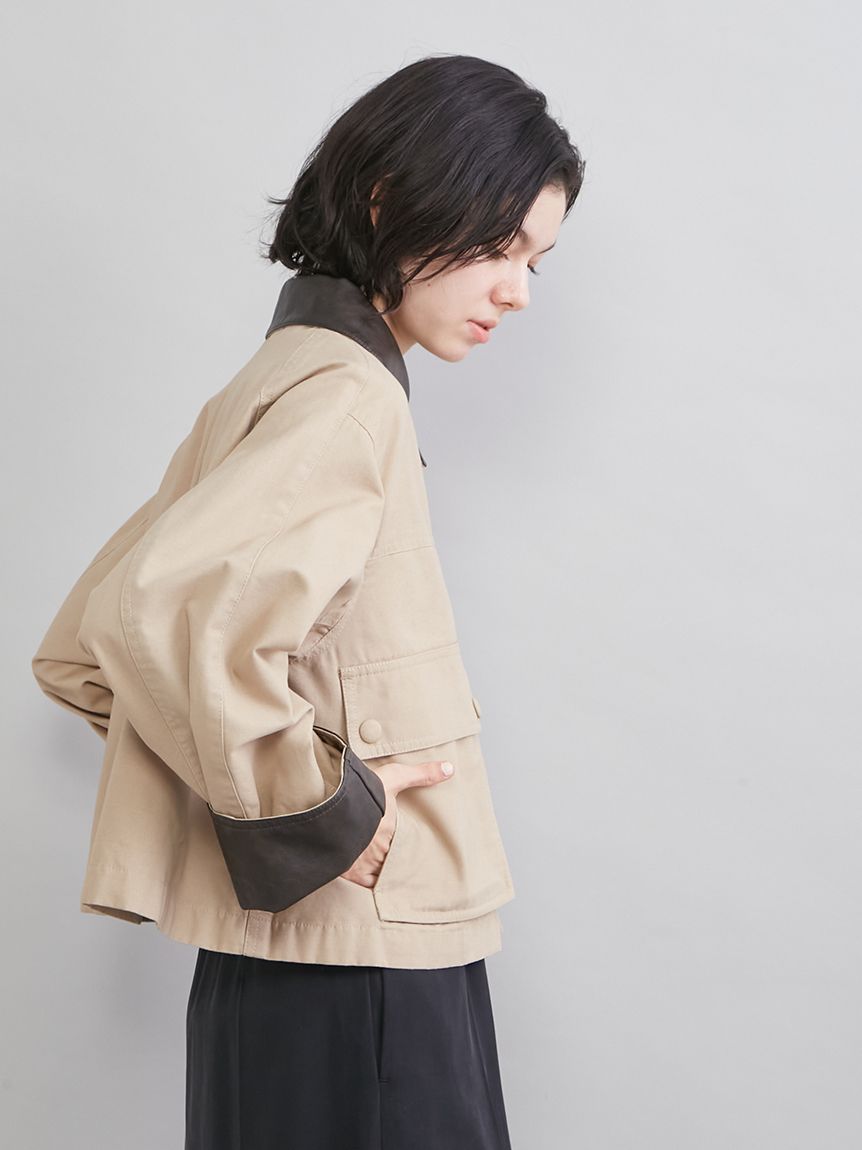 | 素材 | : | 表布:棉100% / 領子:塗層(聚酯樹脂)基布:嫘縈100% / 領子裡側:棉100% / 裡布:上衣和袖子內層: 棉64%,聚酯纖維36% / 下擺:聚酯纖維100% 。 |