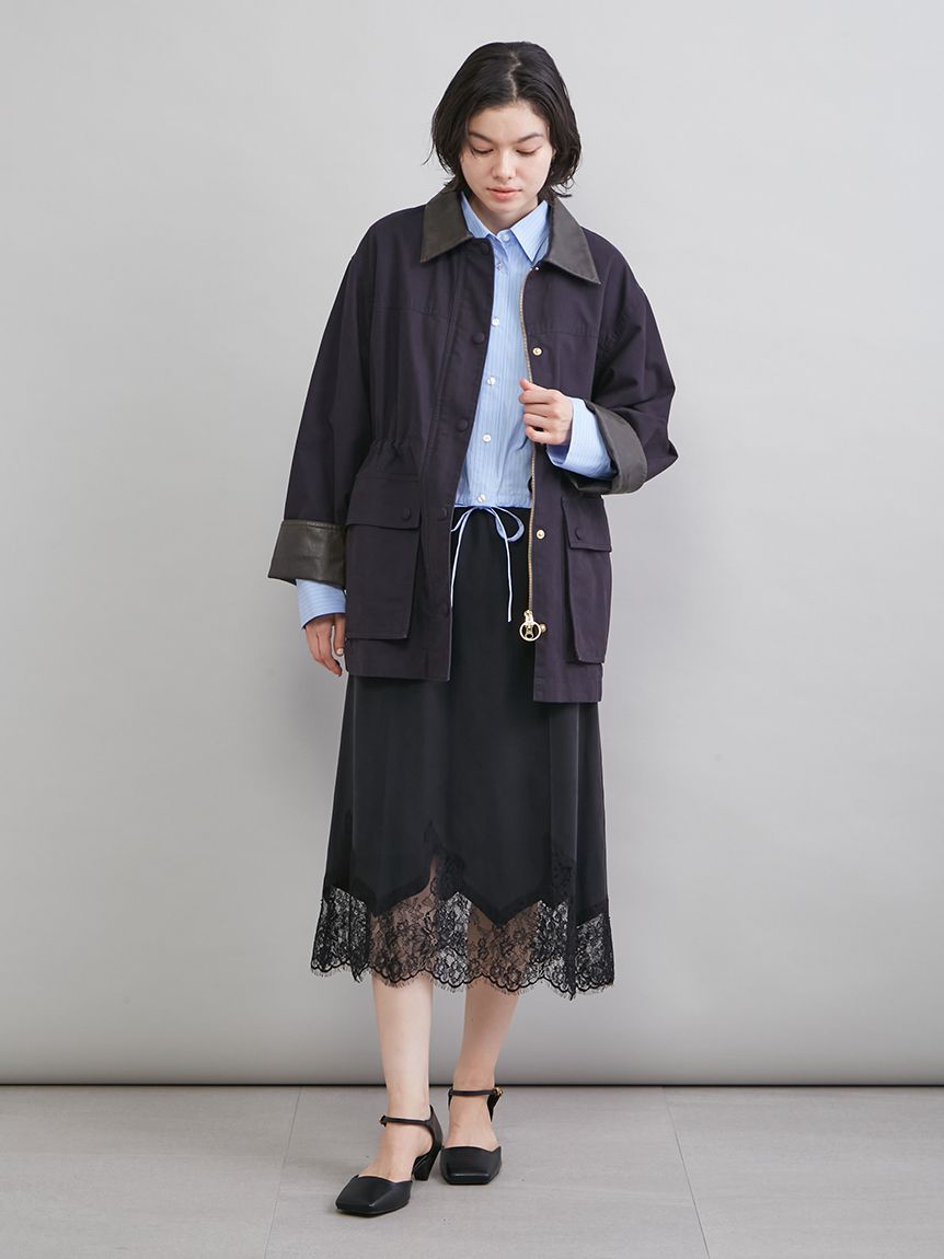人氣工裝外套以易於搭配的中長版剪裁,呈現女性化俐落感。