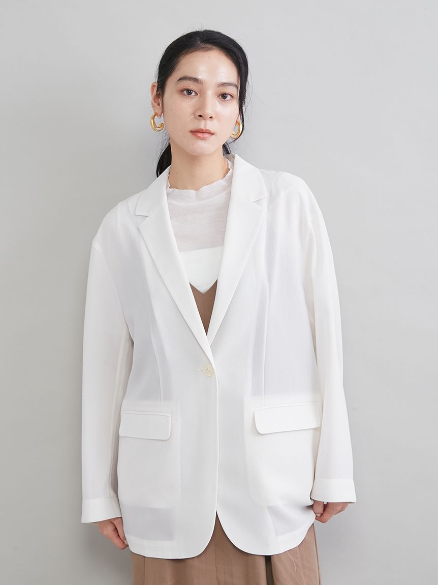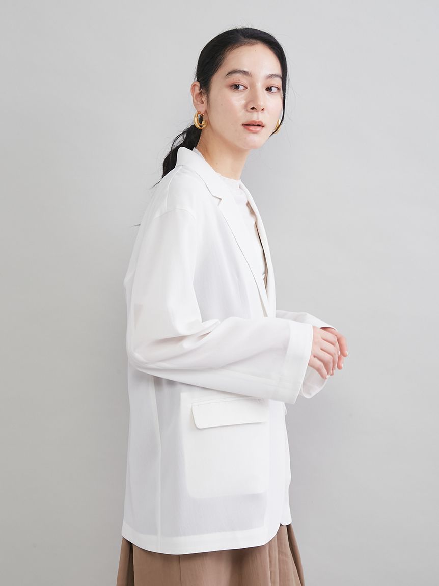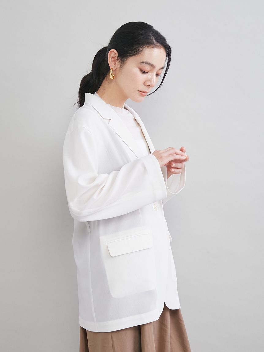由於採用透視材質,穿著輕盈舒適,是從春季到夏季都十分實用的外套。無論是需要穿著外套的職場場合、休閒場合,還是冷氣房內,都能在各種場合大顯身手。