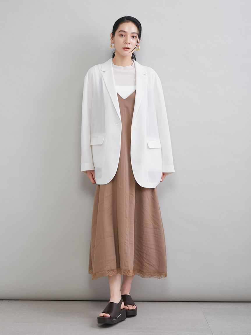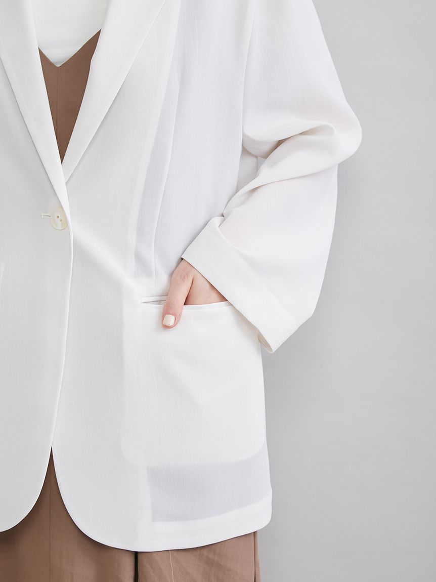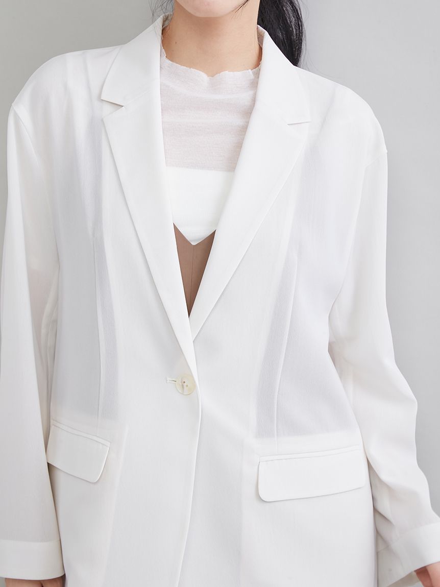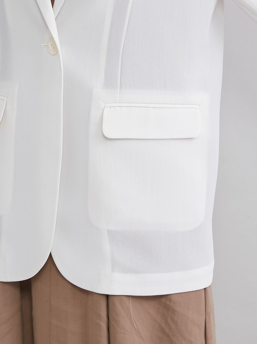 由於採用透視材質,穿著輕盈舒適,是從春季到夏季都十分實用的外套。無論是需要穿著外套的職場場合、休閒場合,還是冷氣房內,都能在各種場合大顯身手。