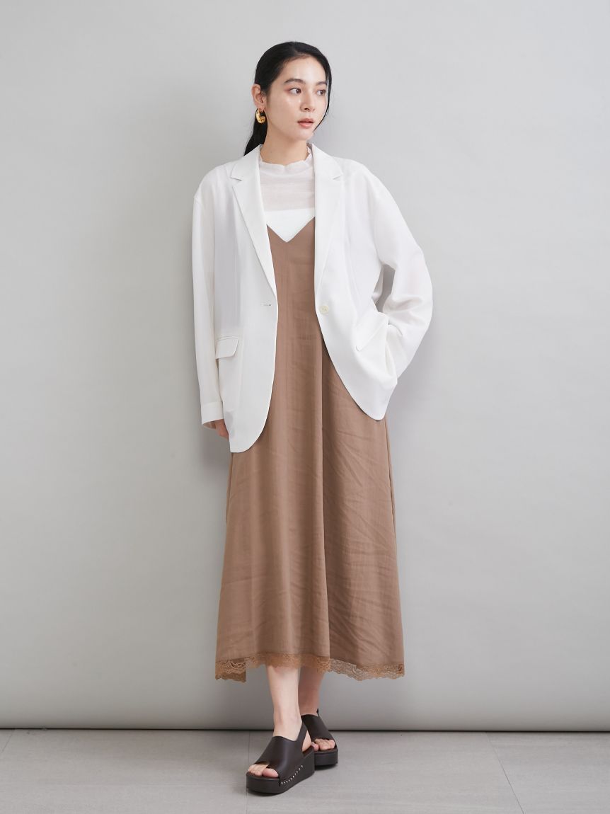 前襟採用單鈕扣設計,營造更簡約的印象。這是適合成熟女性、展現洗練氣質的單品。
