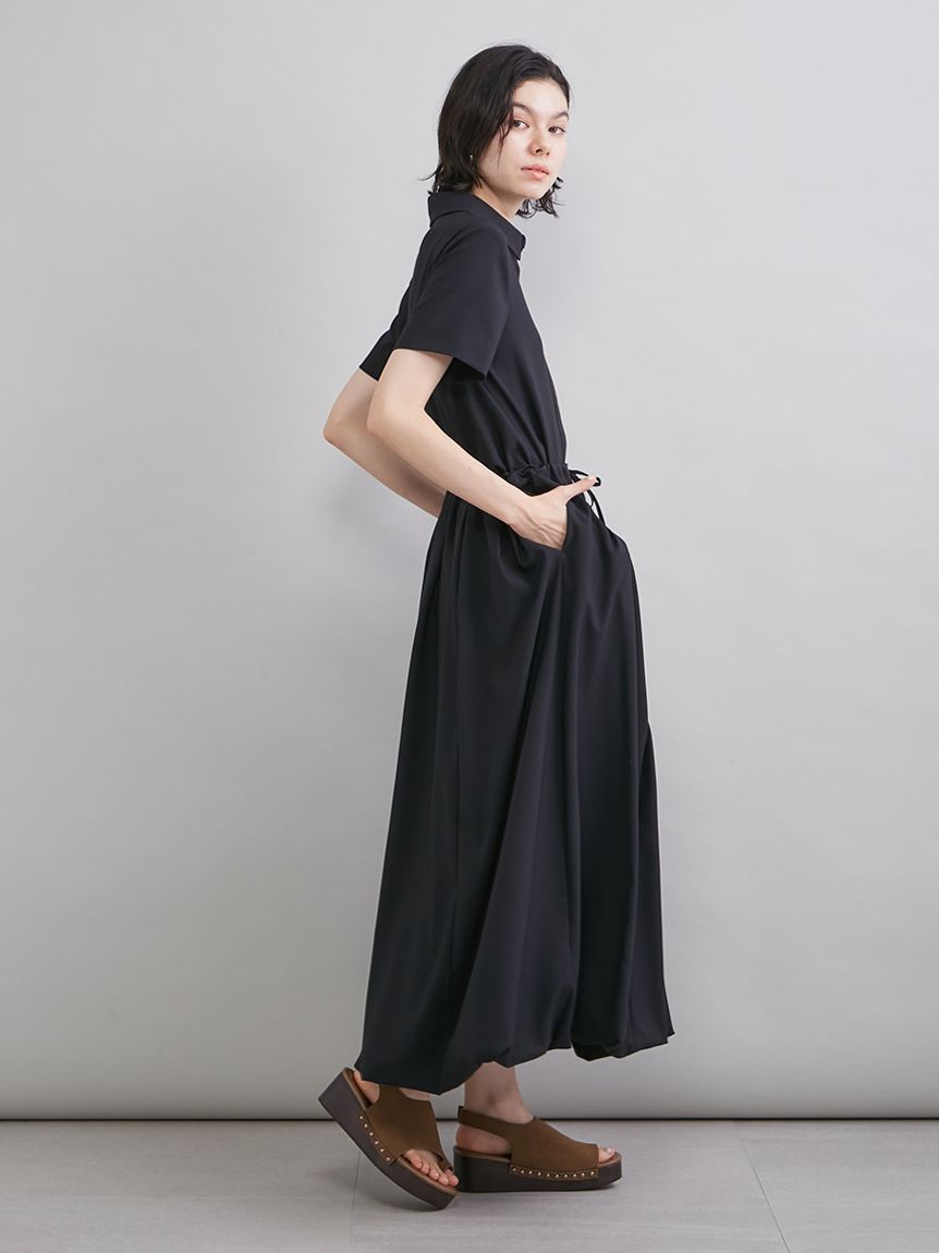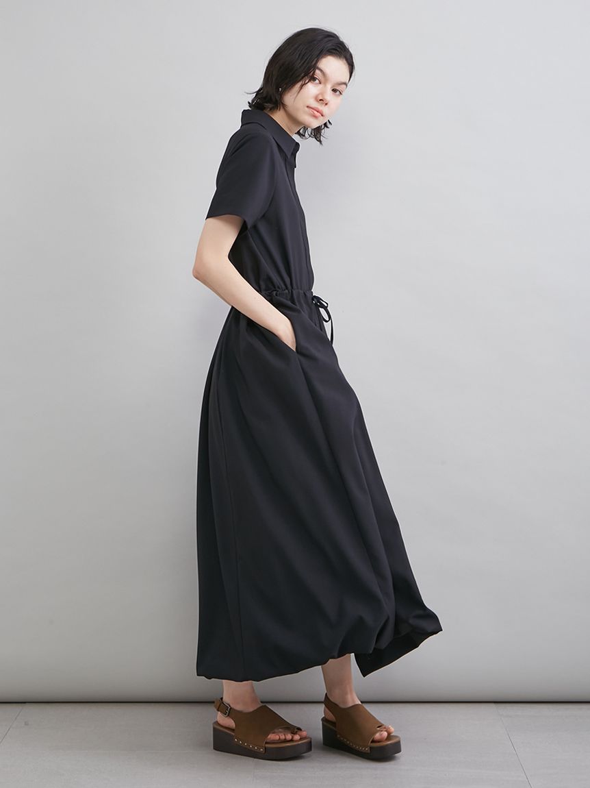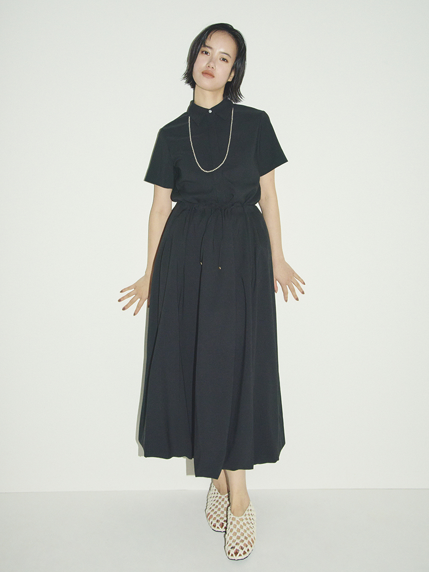腰部背面扣子可將上衣與下身固定合併,呈現完整洋裝;解開扣子即可分為短版襯衫與氣球裙,各自單穿皆百搭,穿搭彈性十足。