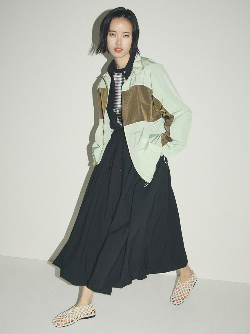 裙身腰部採鬆緊帶加抽繩設計,可依喜好調整腰圍。