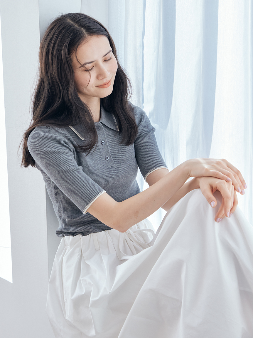 上衣針織部分採粘膠纖維混紡,柔軟且具彈性,呈現乾淨利落的質感。