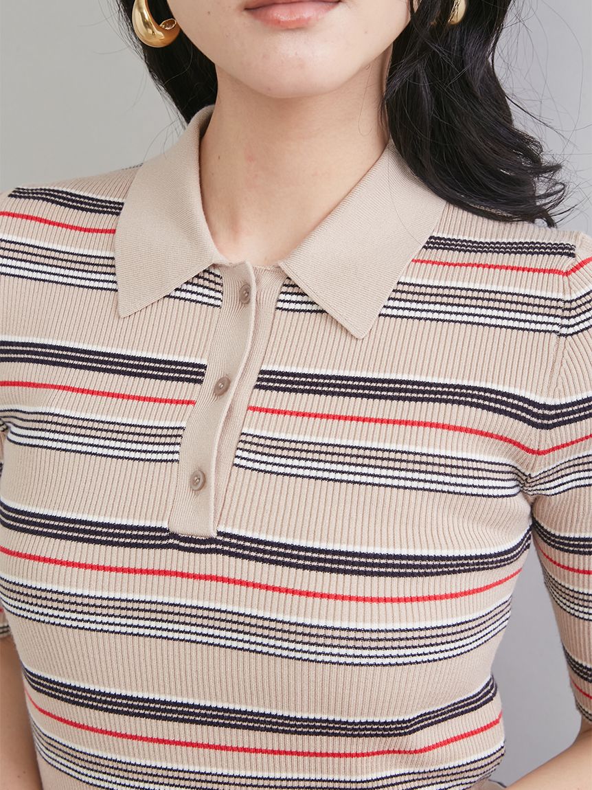提供顏色:以線條Polo作為點綴的<IVR>與<BLK>、新鮮感多色條紋的<BORDER>。