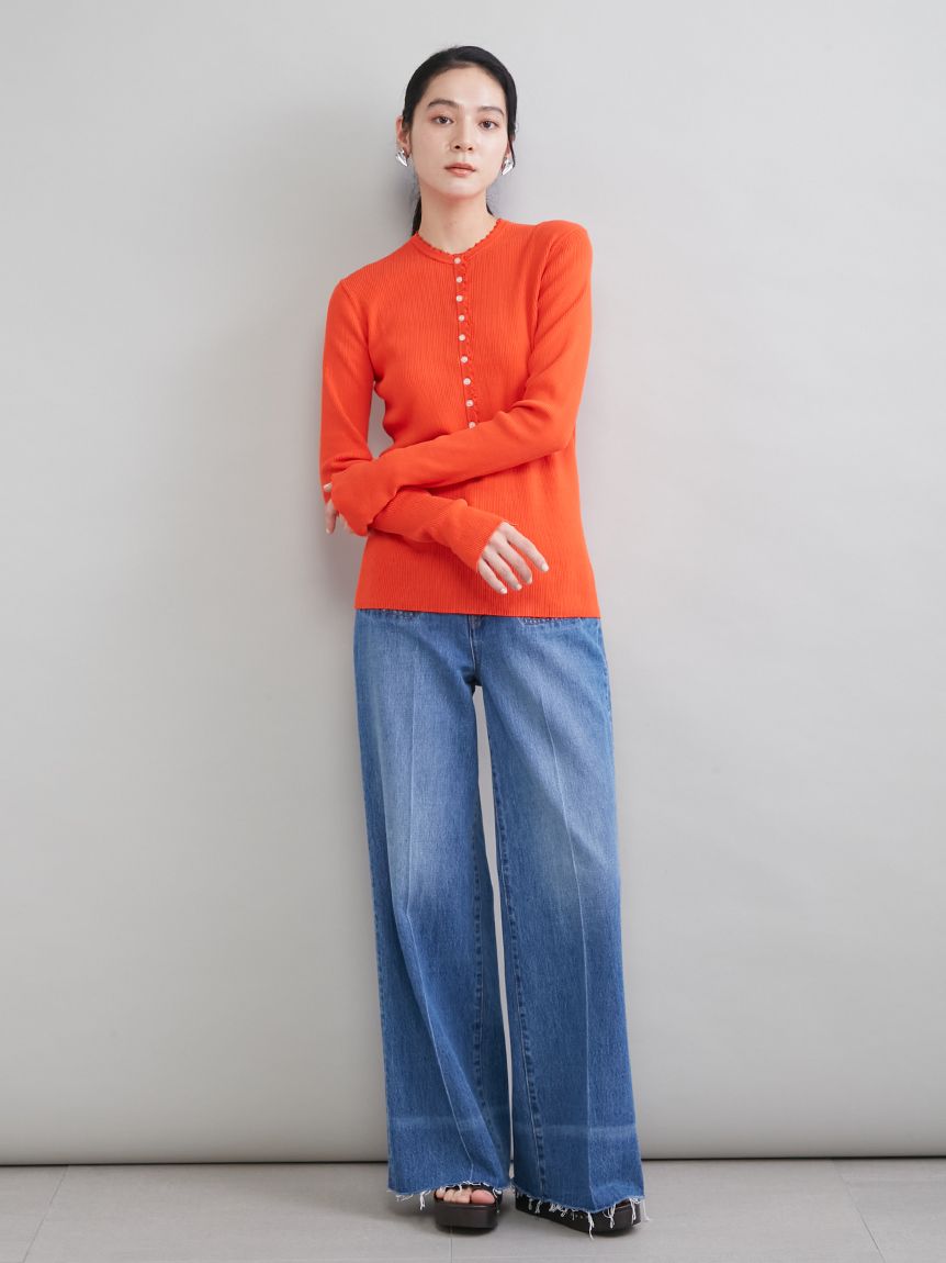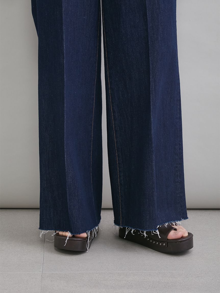 褲管為剪裁毛邊,並加入橫向特殊加工,營造如改造般的復古質感。