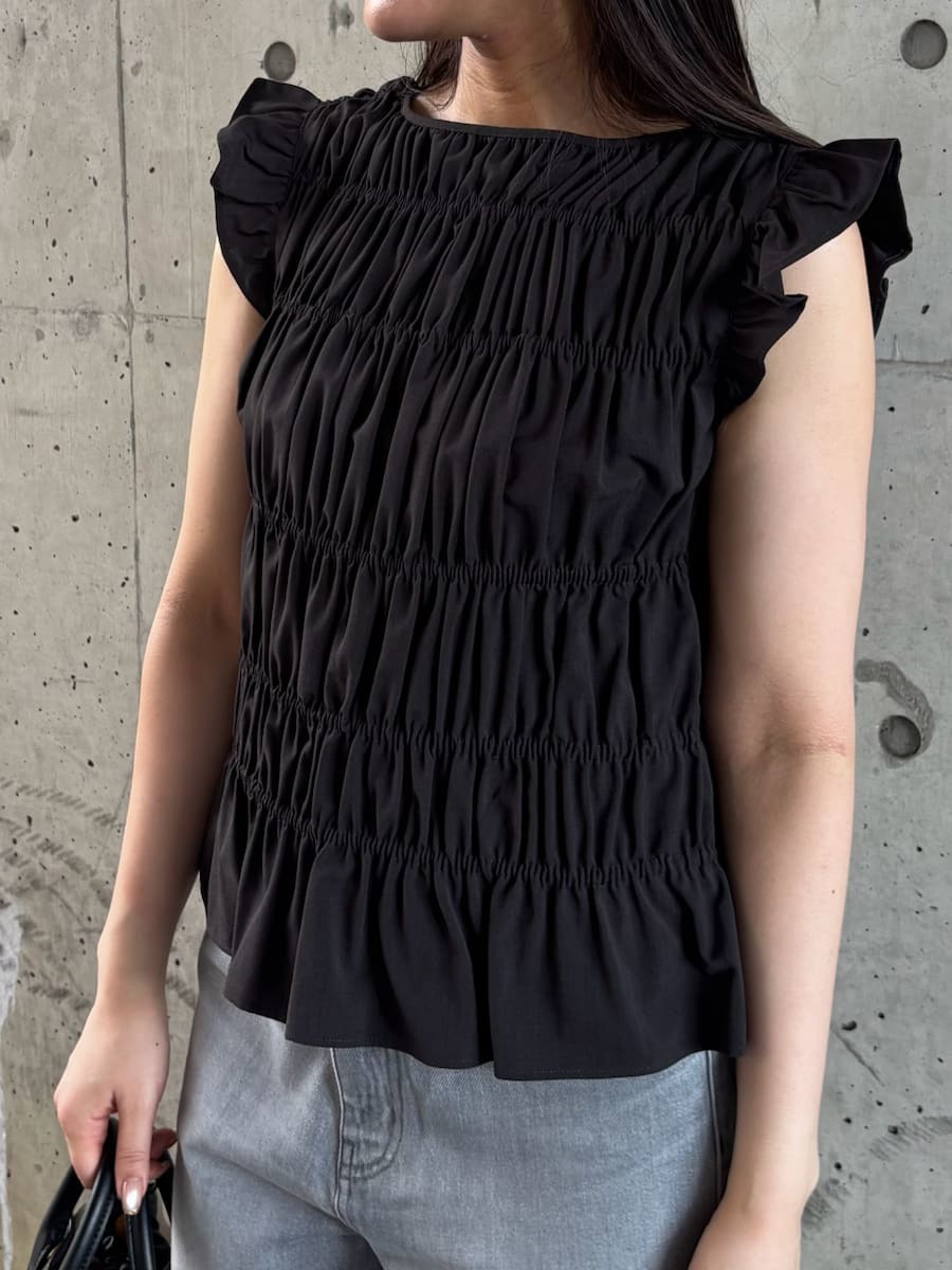 【層次感十足的抽皺設計。營造立體感的女性化上衣】