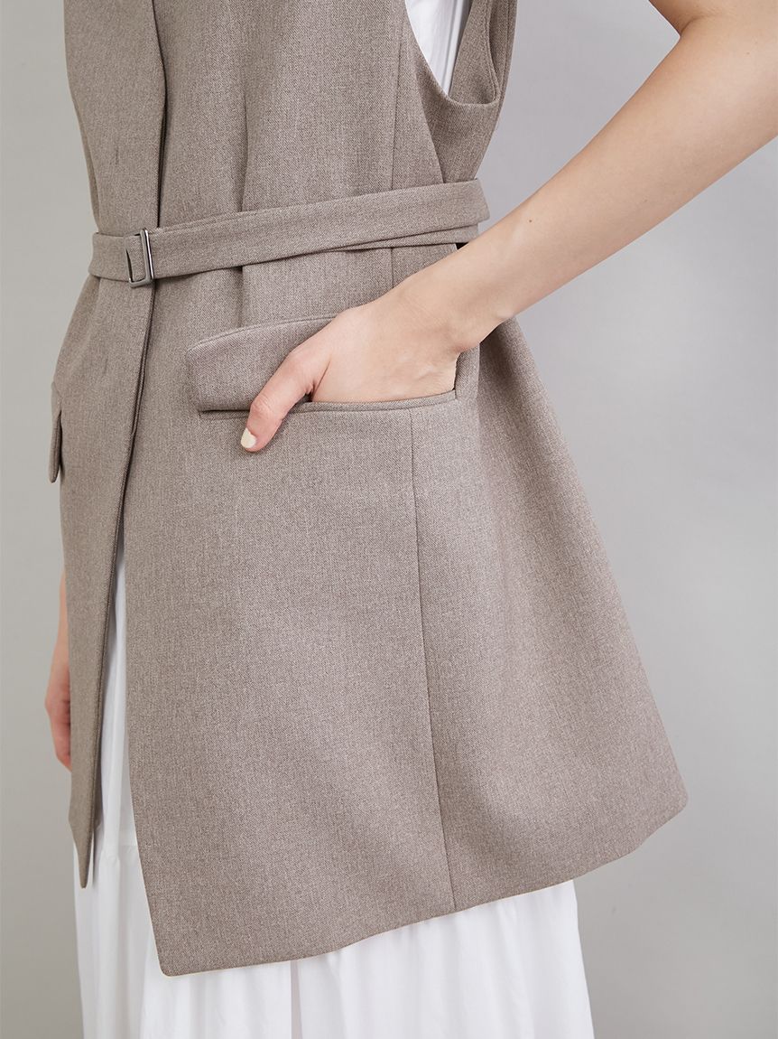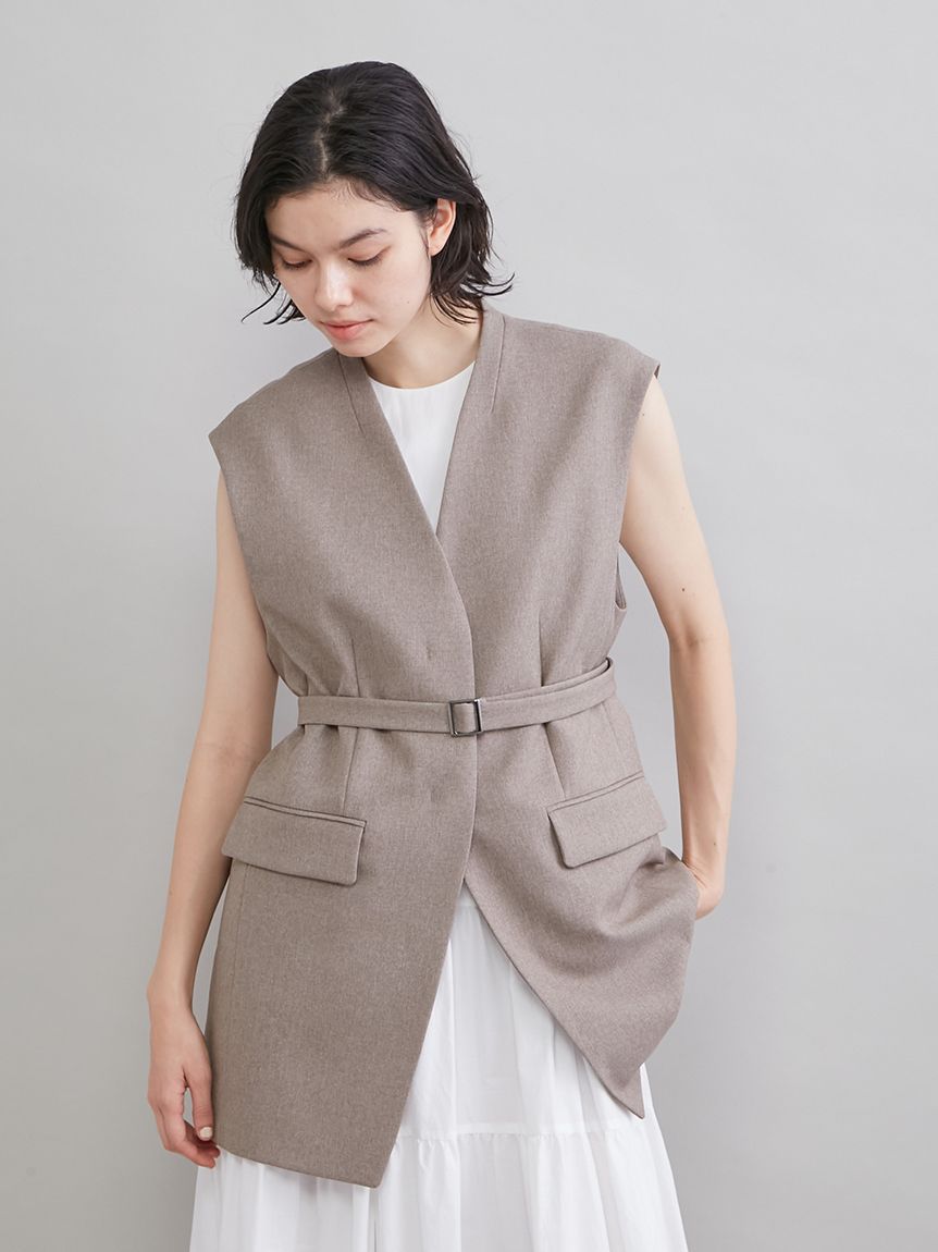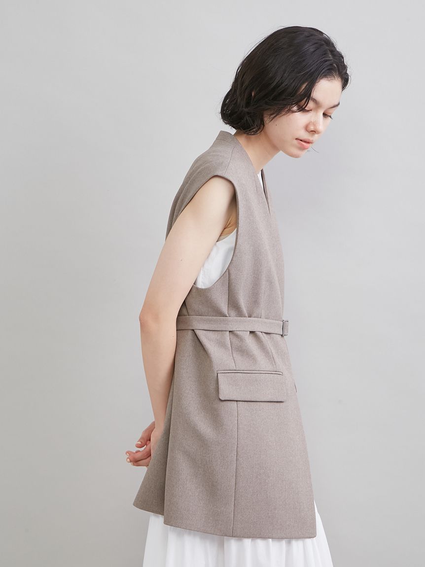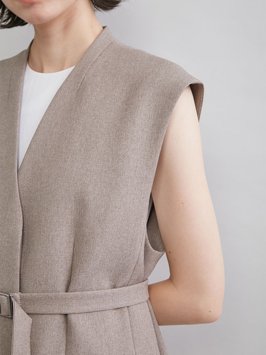 【附腰帶設計,輕鬆打造流行收腰感的無領背心】