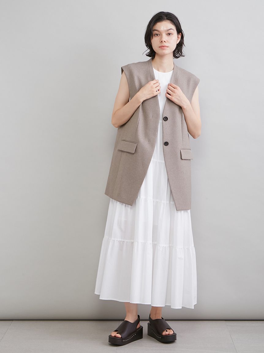 將優雅的隱藏式門襟背心以寬鬆版型呈現,打造時尚感十足的一款單品。
