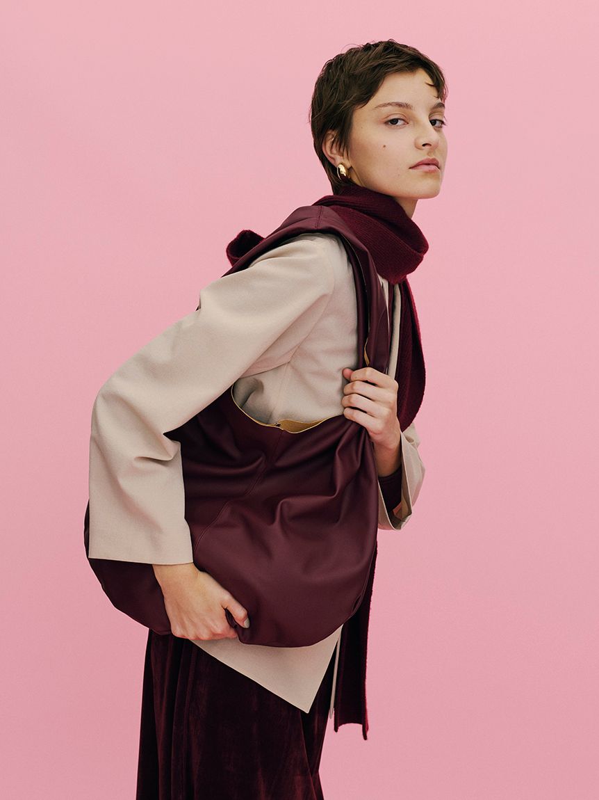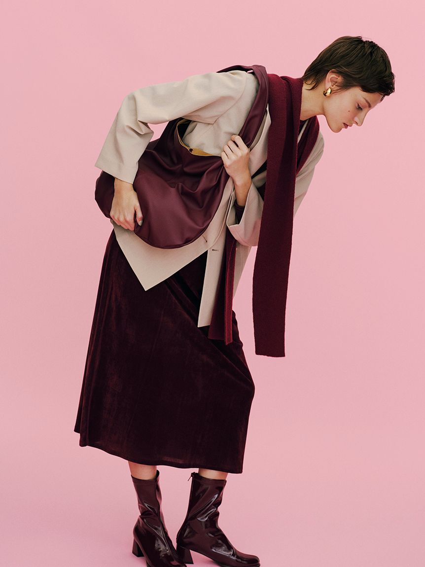 除了經典的“導演式披法”,也可像一般圍巾般繞頸使用,是兼具趣味與實用性的配件。