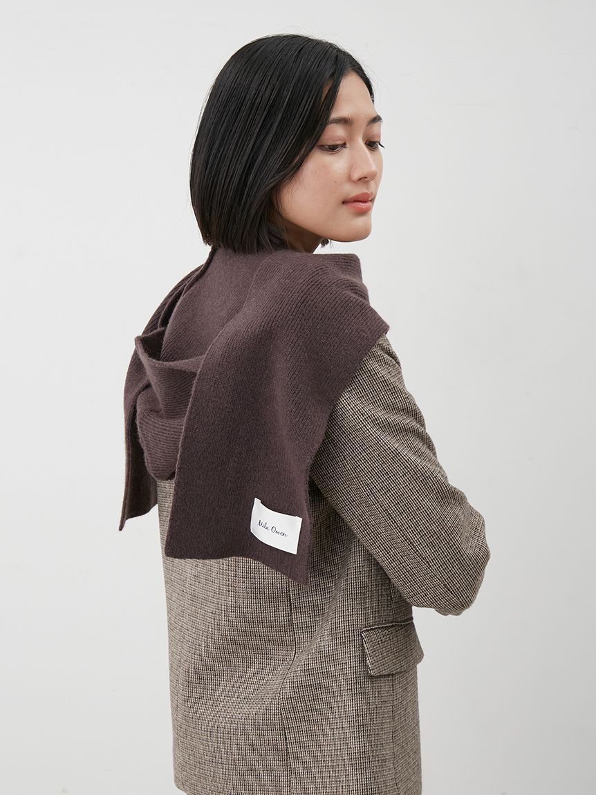 採用適中厚度且輕盈的針織材質,羅紋編法帶出適度的蓬鬆感,讓圍法自然平衡且舒適。