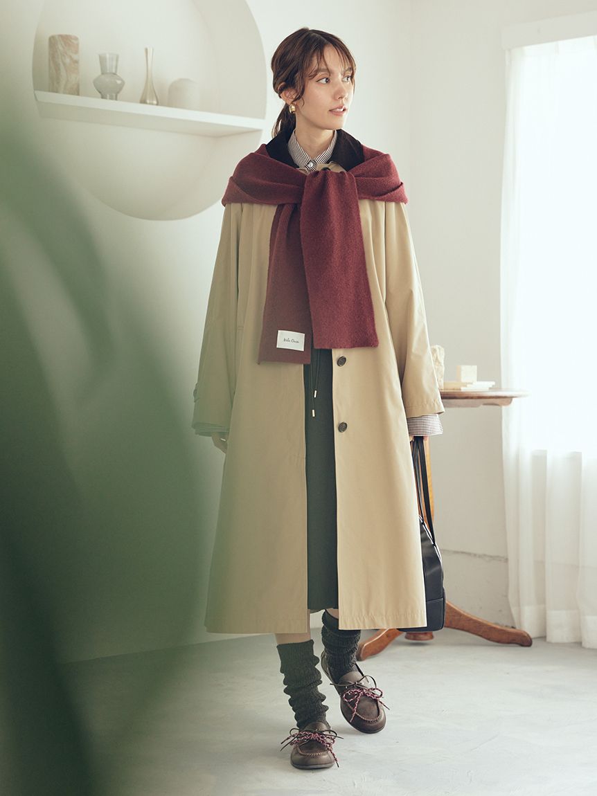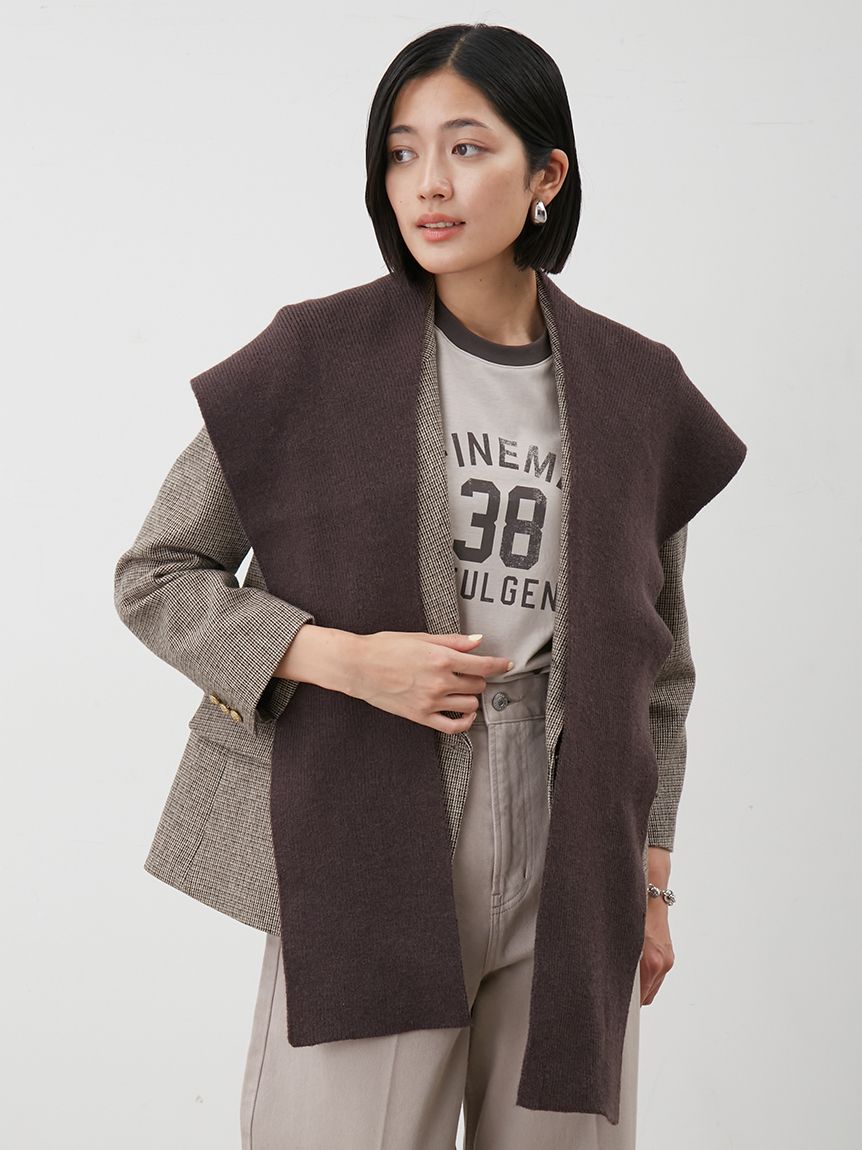 【彷彿將毛衣披在肩上般的,提升穿搭質感的針織圍巾】