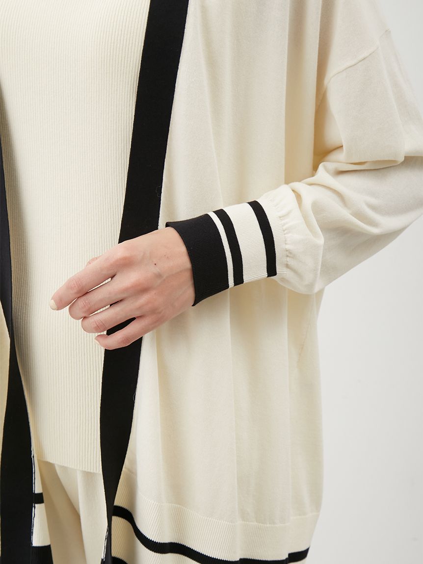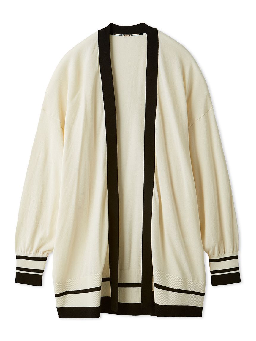 前方無鈕扣設計,造型簡約俐落,非常適合氣溫不穩定時快速披上,也方便隨身攜帶。