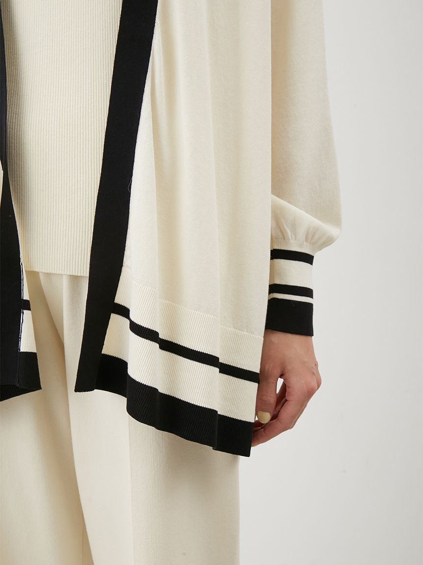 採用高針距羅紋針織的薄透天竺素材,質感高雅且微微透膚,增添優雅感。