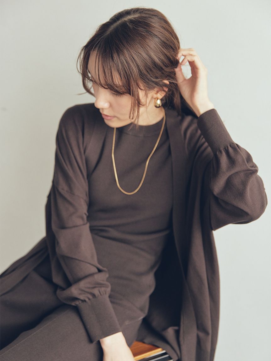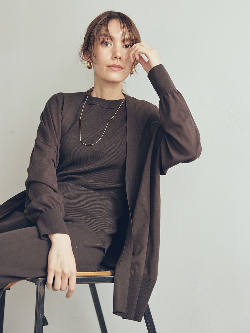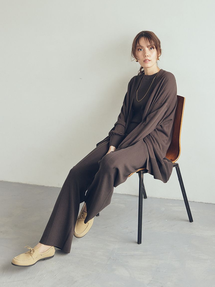 建議搭配同系列使用相同材質的SETUV削肩針織背心(09WNT254013)、SETUV雙彈性腰 Cigarette 針織褲(09WNP254014)穿著,形成整套造型。