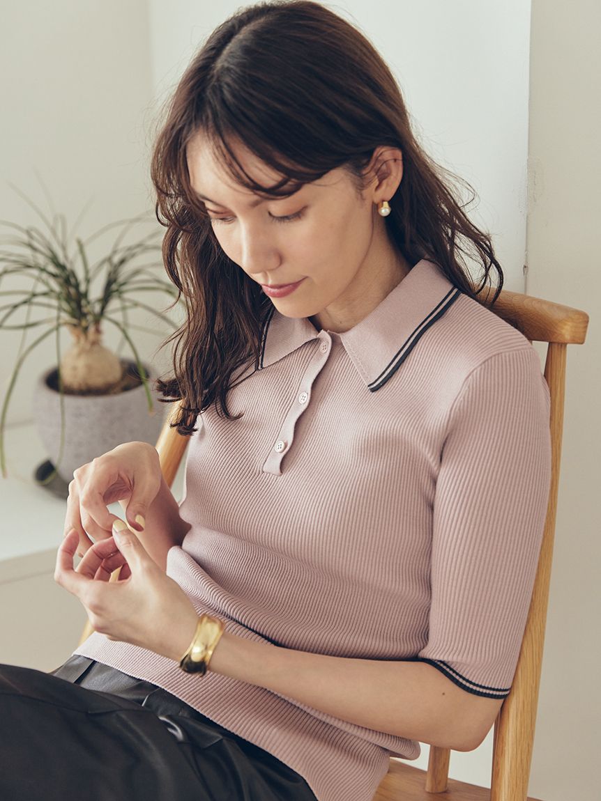經典的美式領針織上衣升級為更時髦、易穿的設計款,展現清爽夏日感。衣身微妙的配色線條,增添運動風格的俐落感,同時帶來現代感與時尚感。