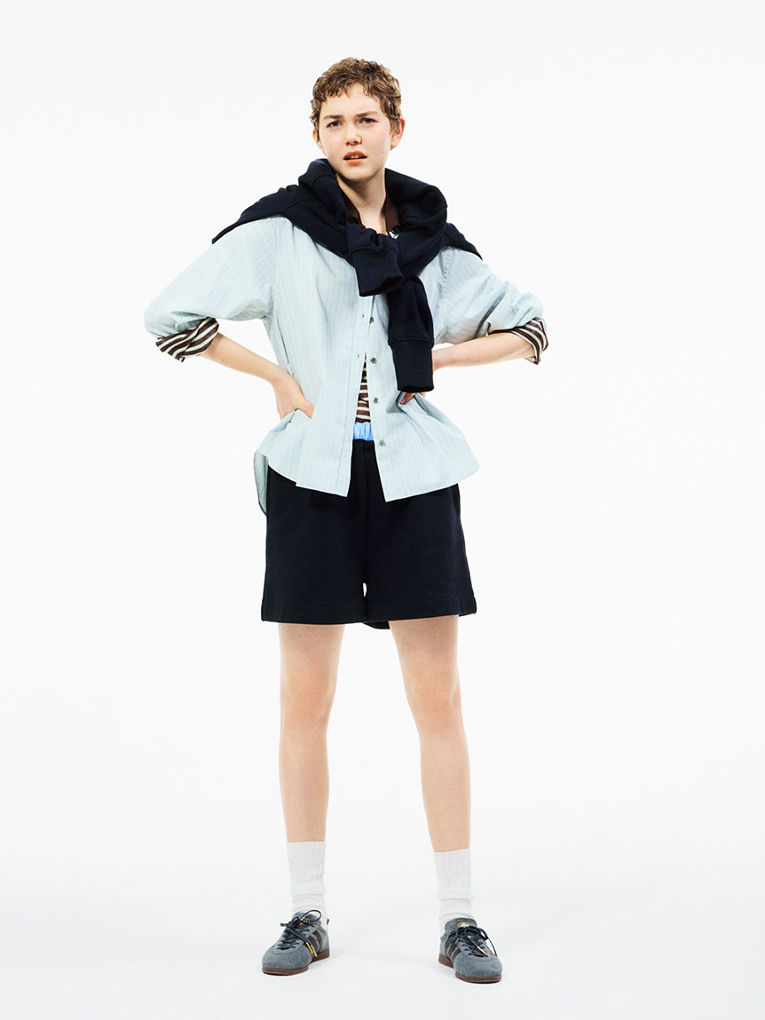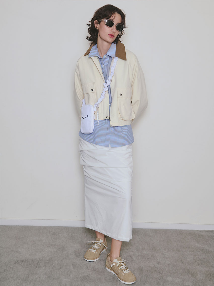 襯衫採適度寬鬆剪裁,可作為外罩穿搭或多層次搭配使用。