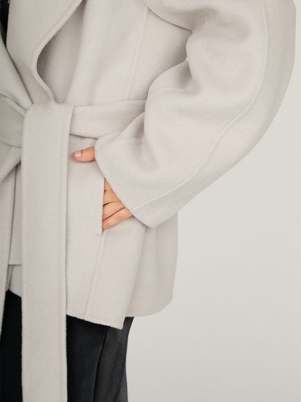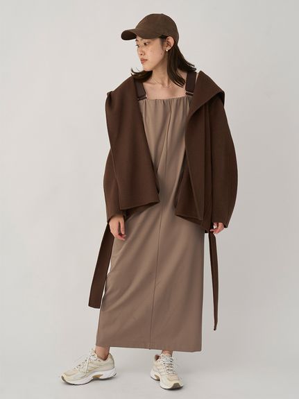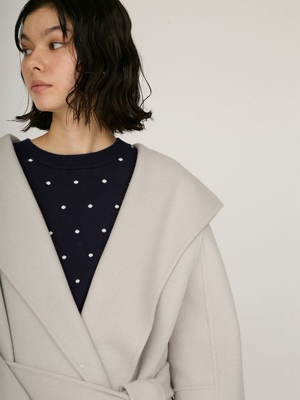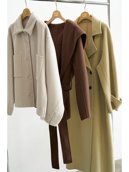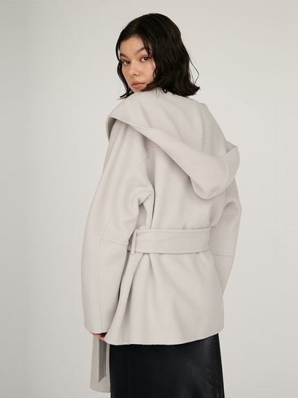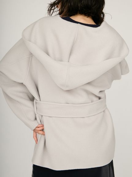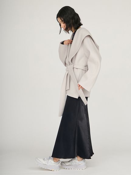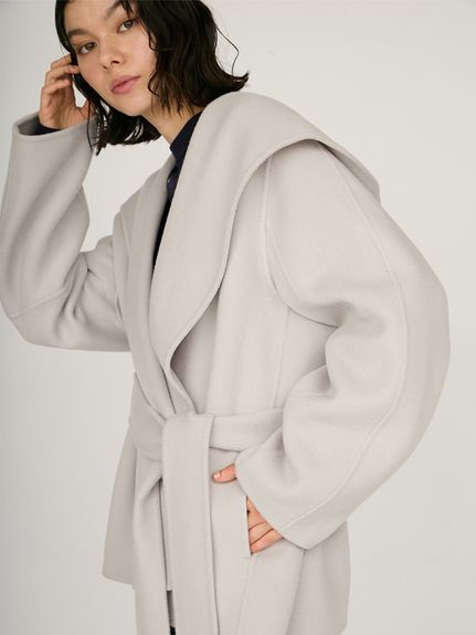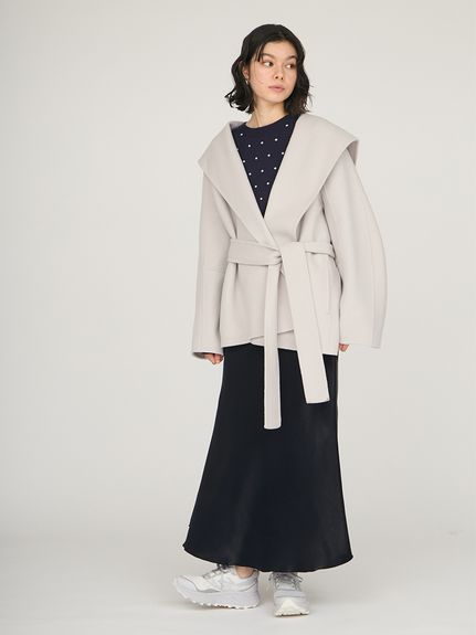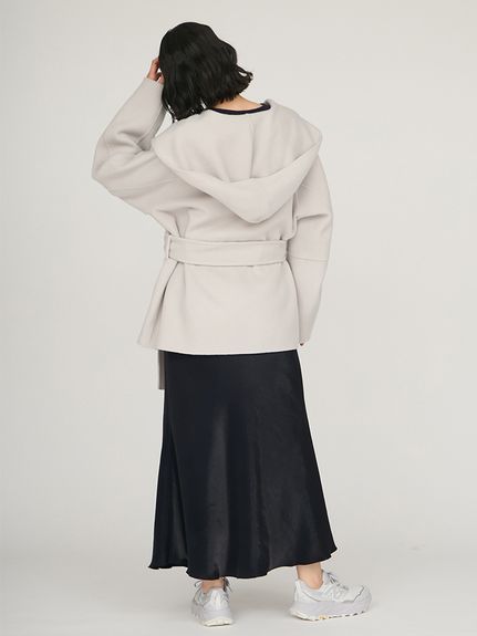 連帽設計採用披肩領風格,一件附腰帶,可依當日心情調整腰線,變換造型。