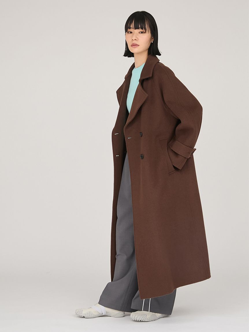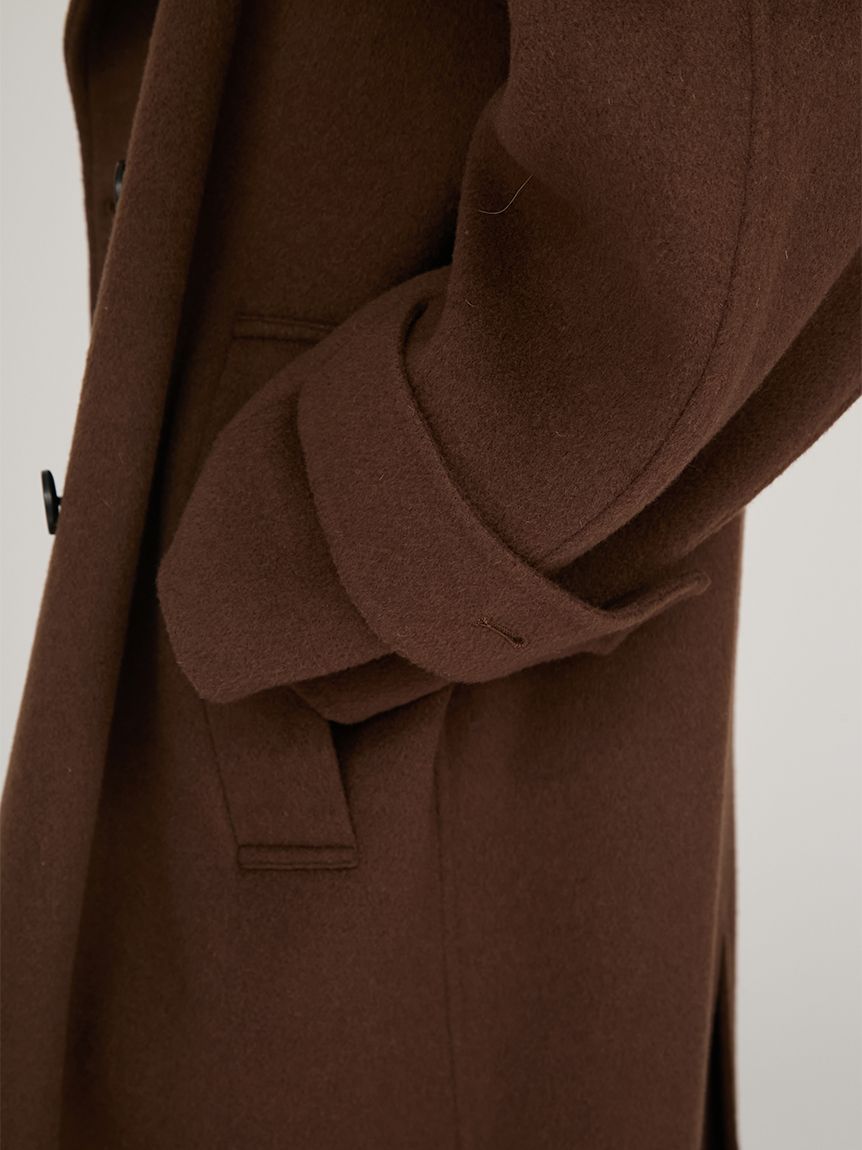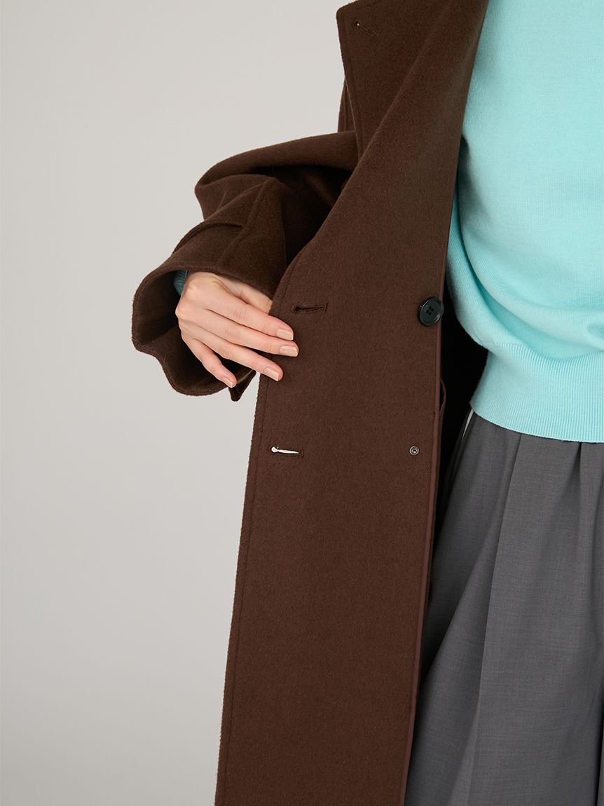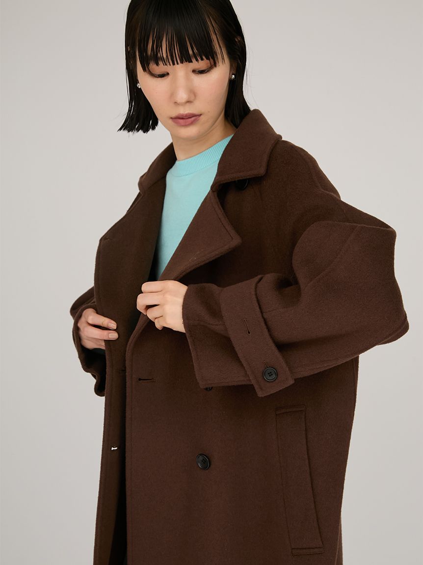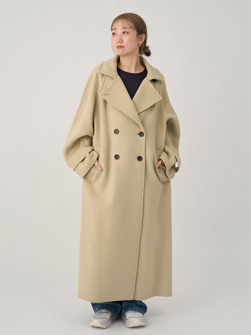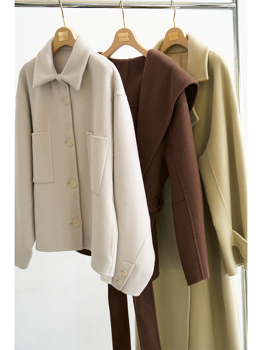 採用寬鬆的Oversize剪裁,質感如同羊絨般柔滑,是一件高級感十足的外套。袖口附可調整腰帶,增添穿搭層次感。