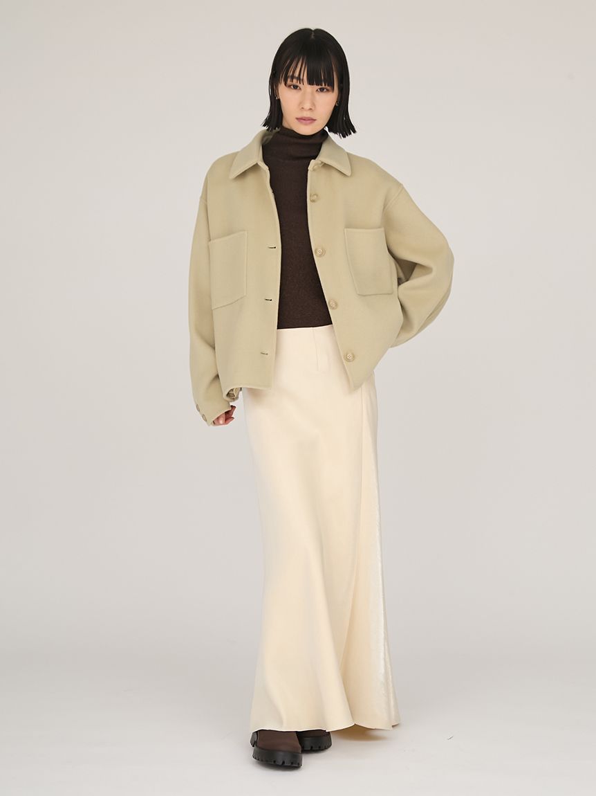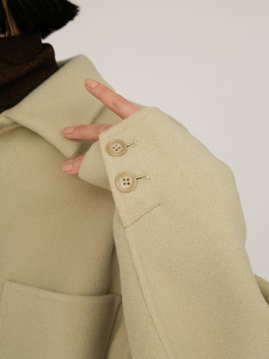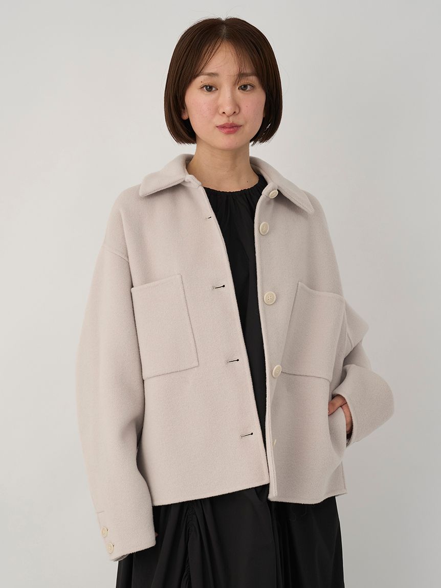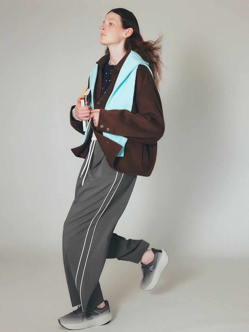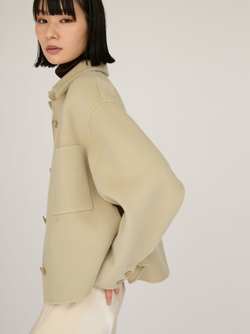 採用去年廣受好評的「Royal Geelong」素材製作的連帽中長版外套登場。質感如羊絨般柔滑,輕盈易穿,舒適好搭配。