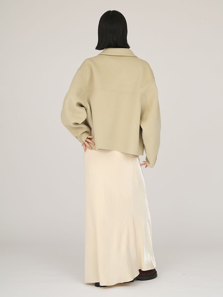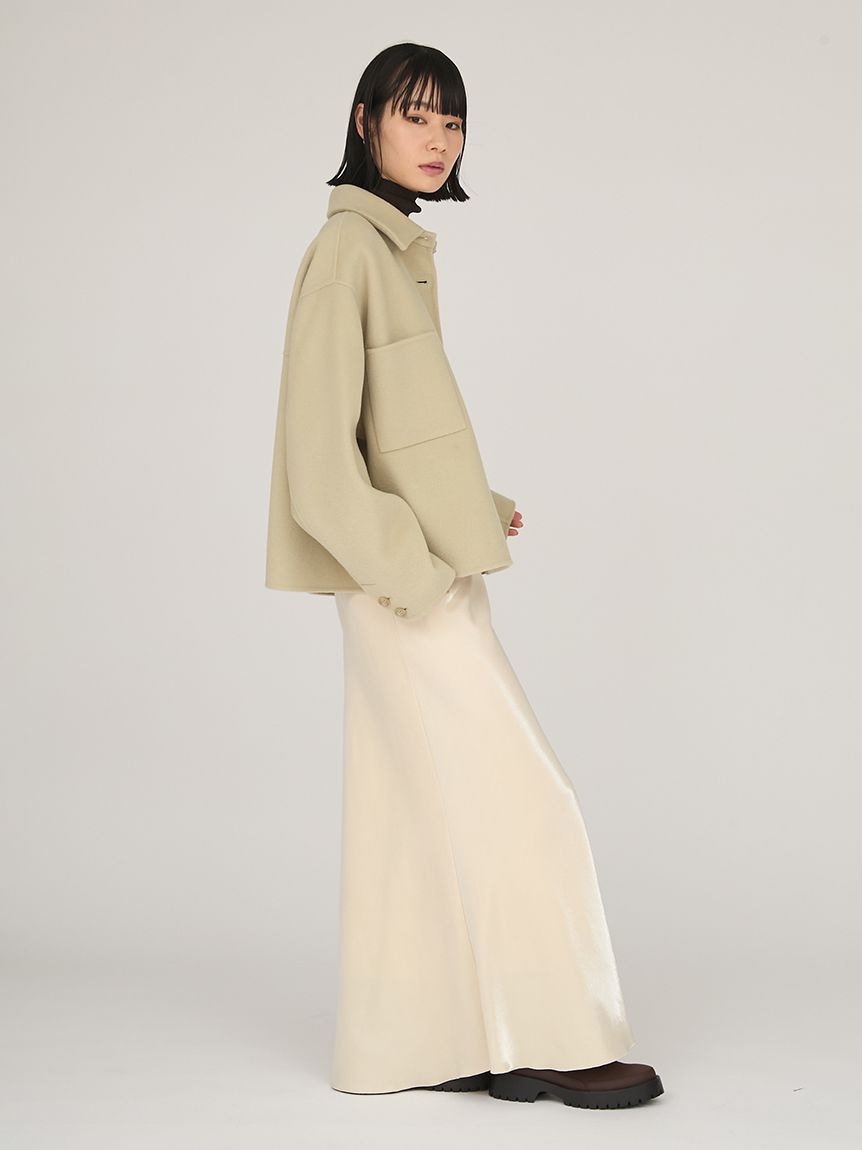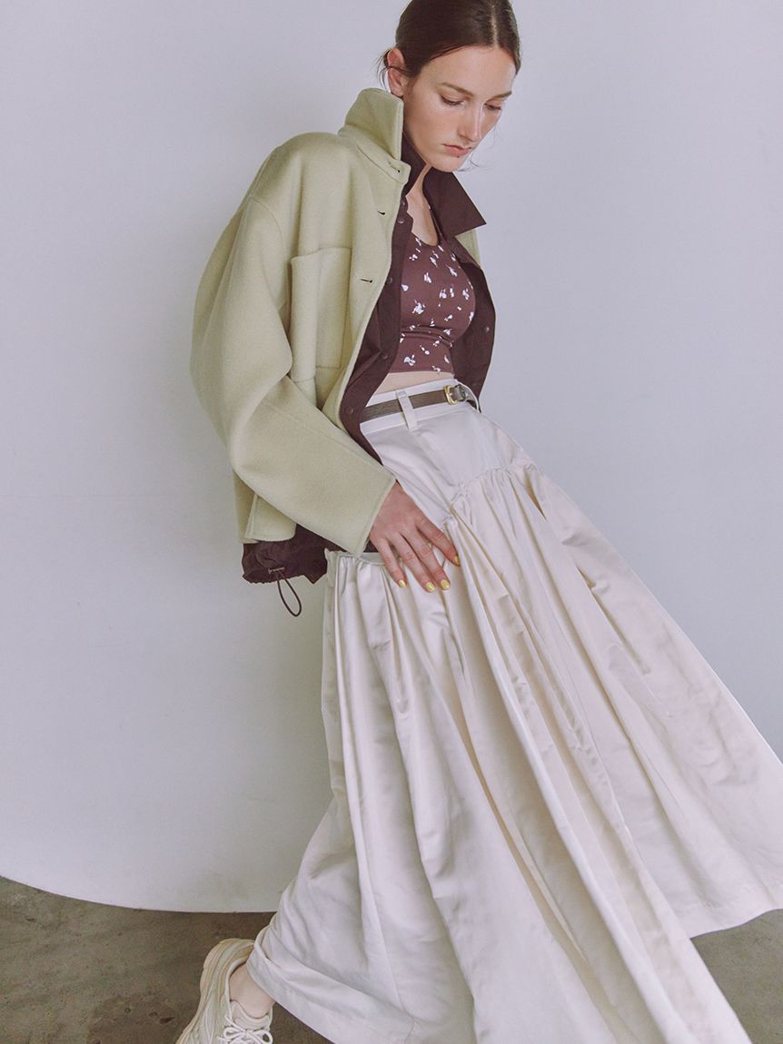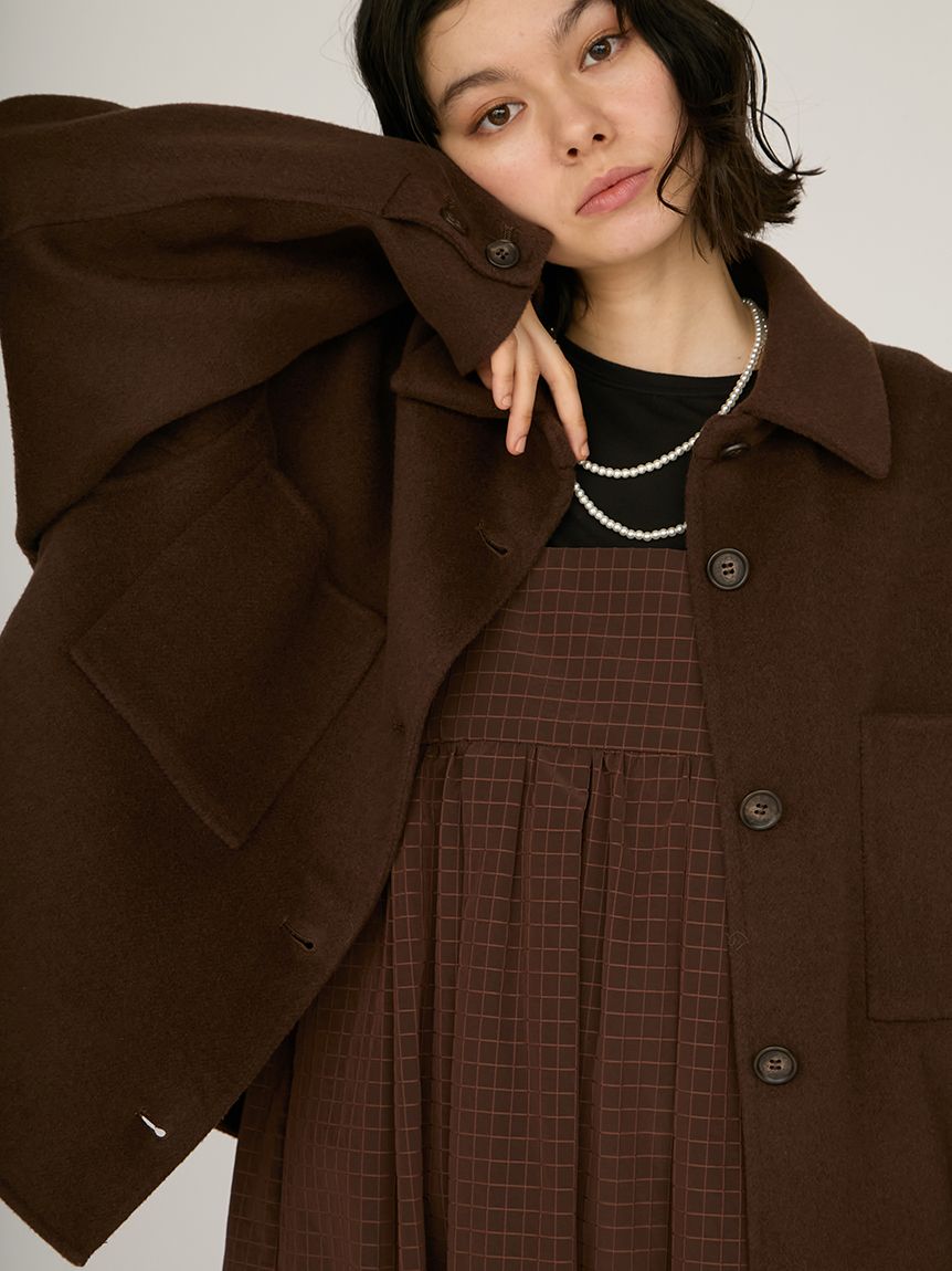 採用去年廣受好評的「Royal Geelong」素材製作的連帽中長版外套登場。質感如羊絨般柔滑,輕盈易穿,舒適好搭配。