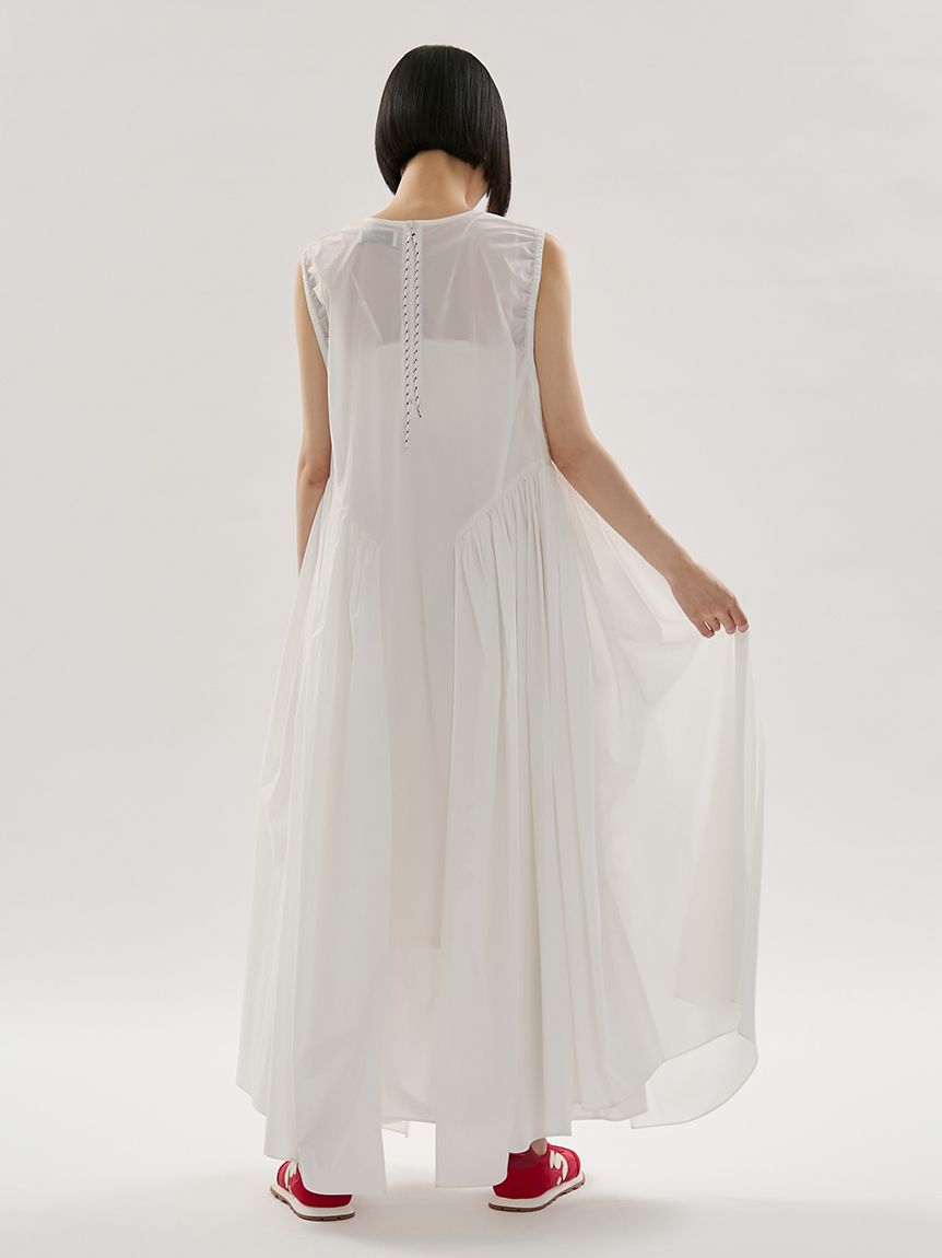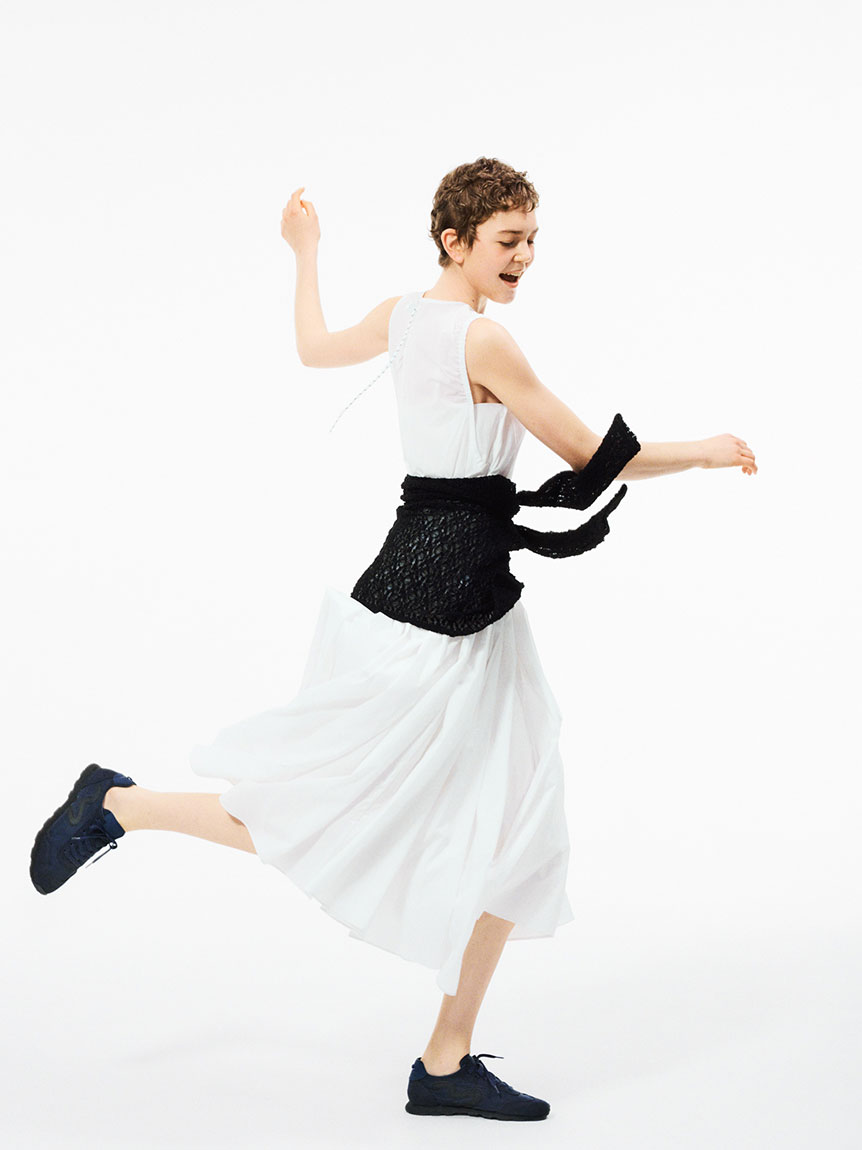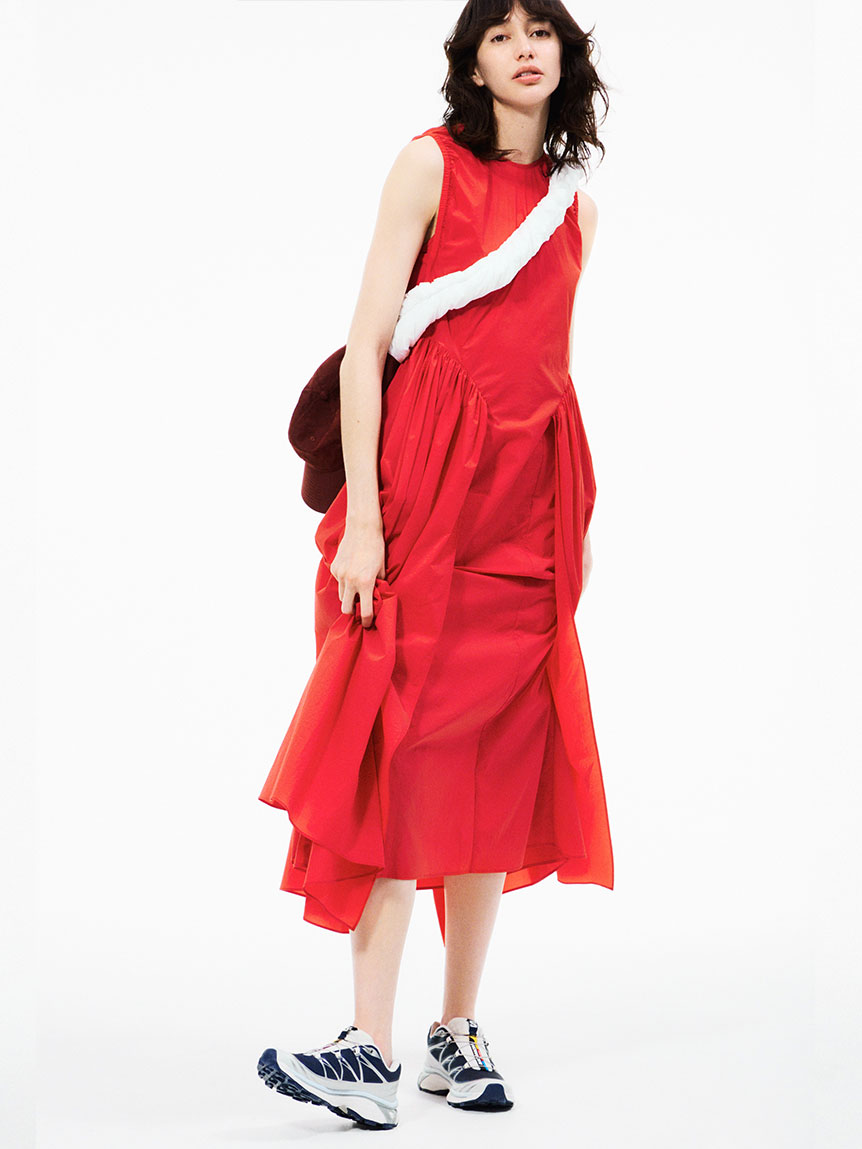 下擺隨步伐擺動,拉鍊處搭配emmi風格的繩索細節,增添造型亮點。