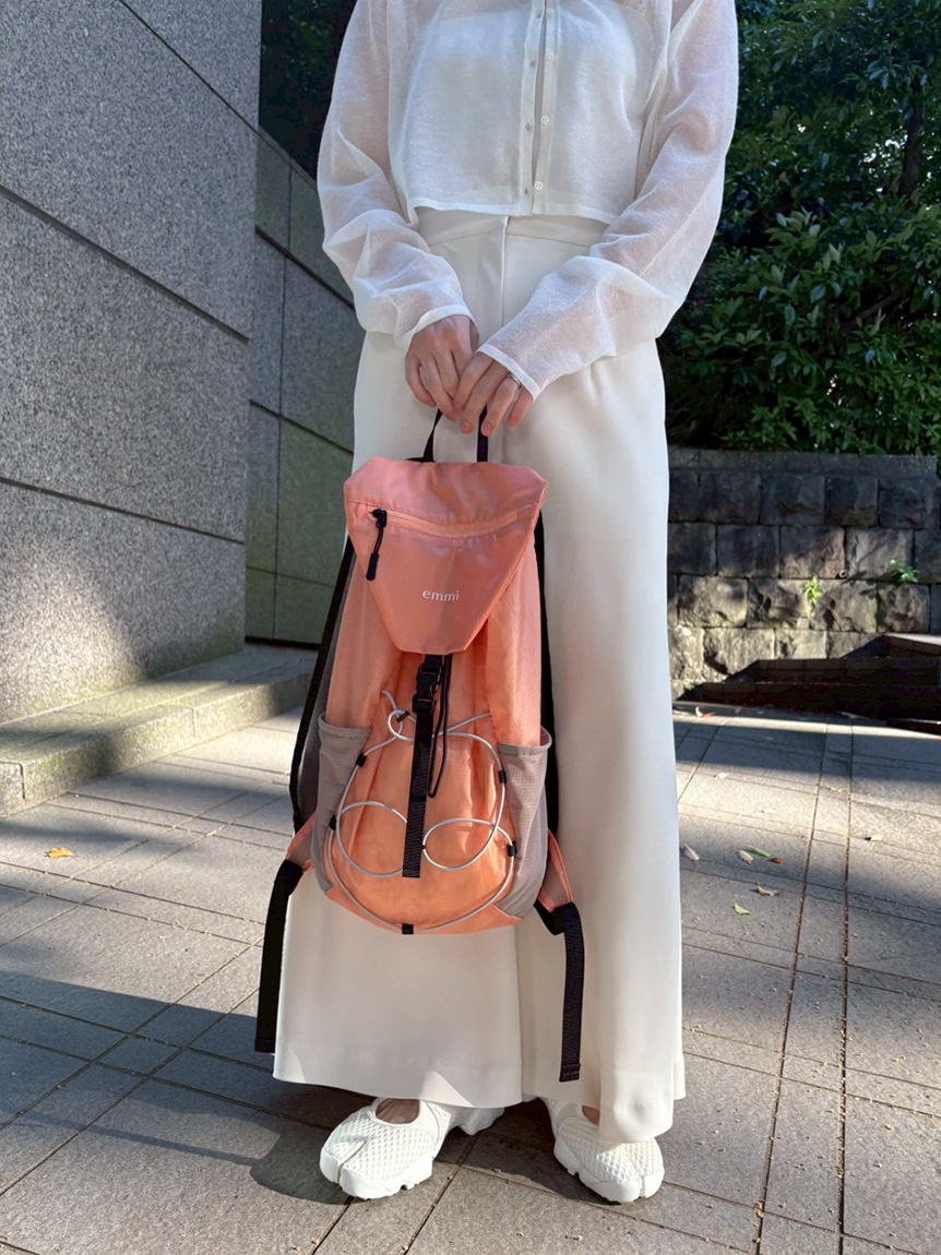 採用微透感的尼龍Ripstop面料,即使在戶外活動也能輕鬆使用。面料具防潑水功能,側邊網眼口袋有彈性,方便放置水瓶等小物。