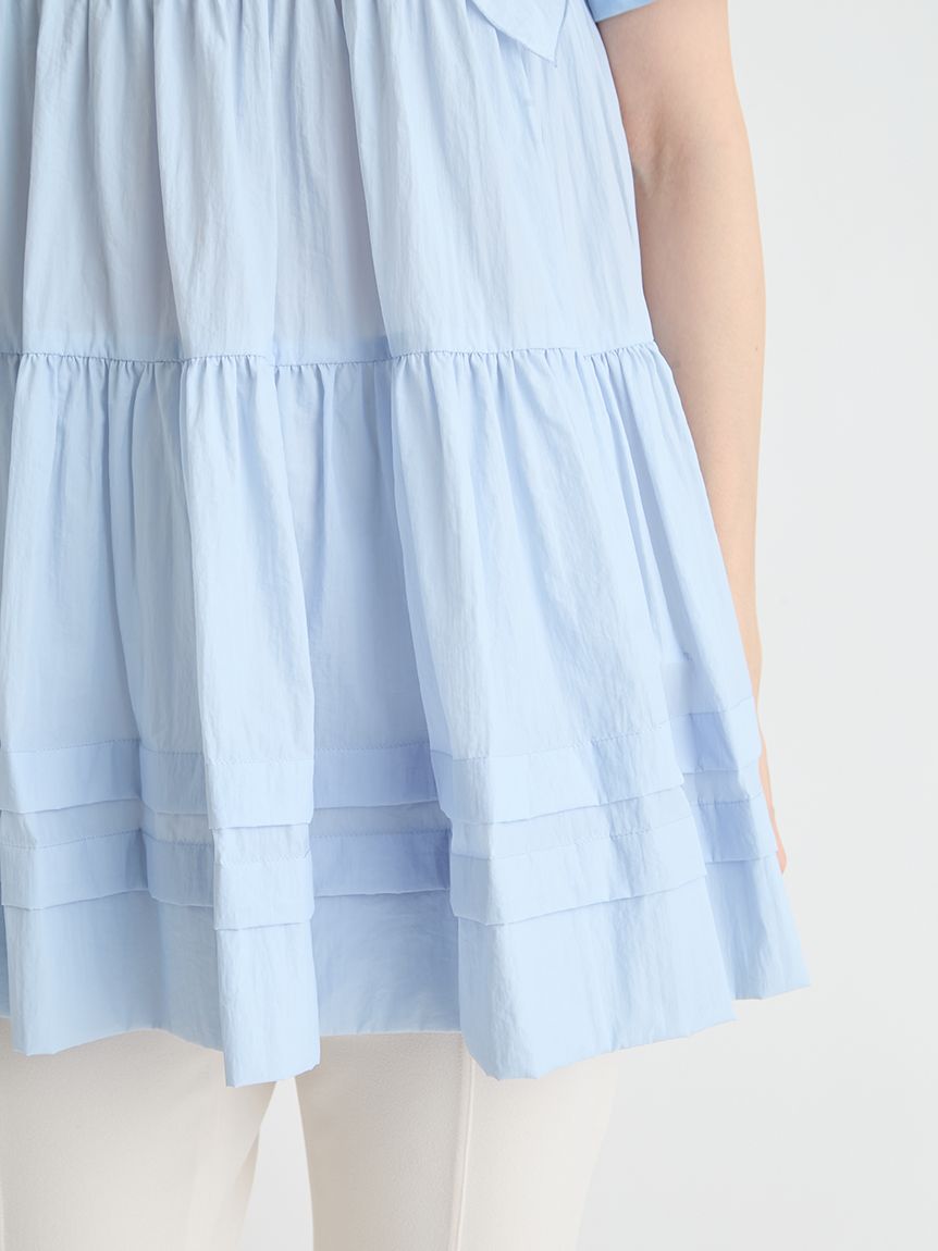 層疊下擺處大量採用褶襉設計,營造出蓬鬆飄逸的輪廓。單穿既能展現時尚感,又能修飾身形。
