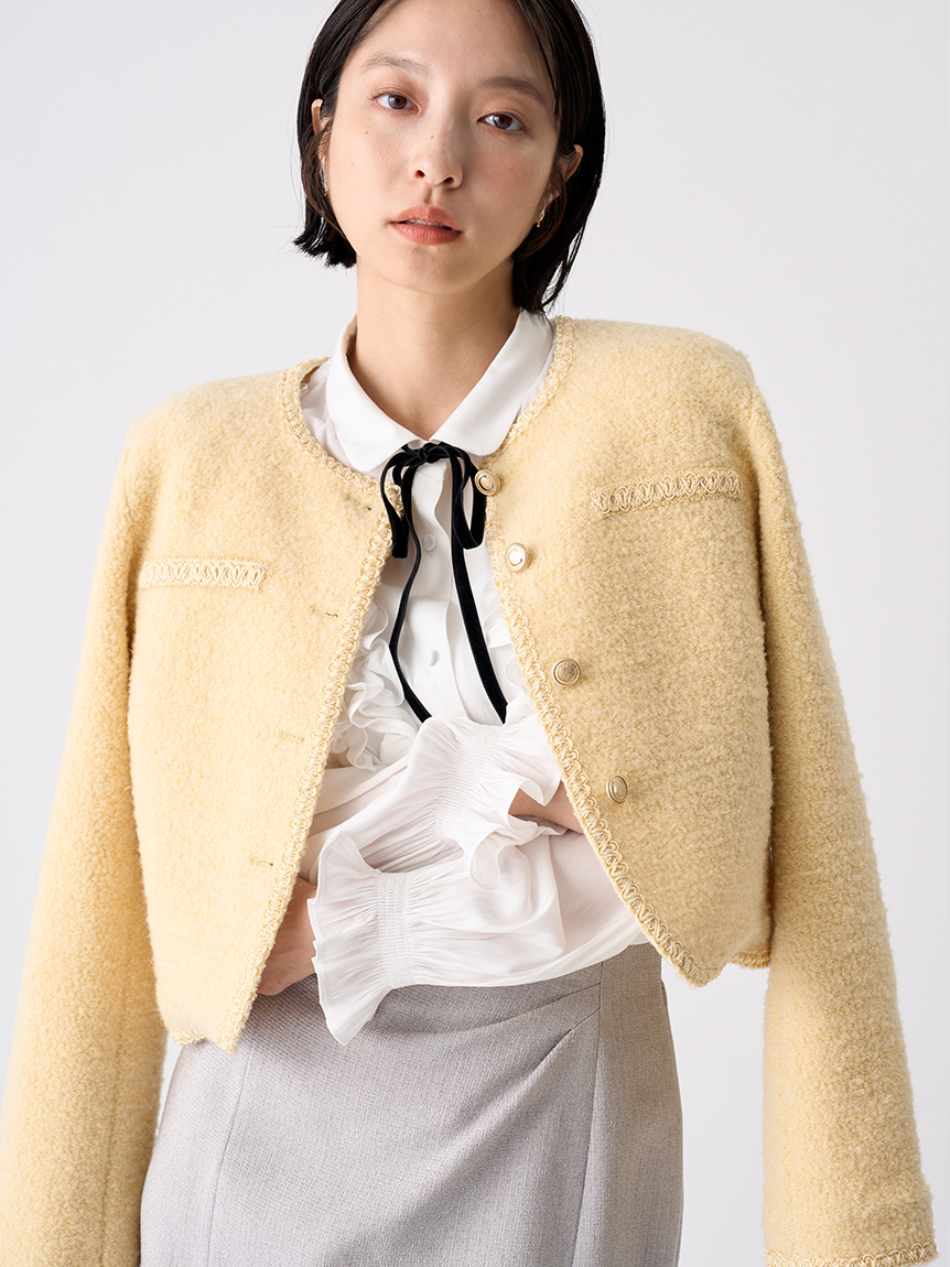 | 素材 | : | [IVR] 100%聚酯纖維/ [YEL] 53%聚酯纖維、47%毛/ [CHECK] 100%聚酯纖維/ 內裡: 100%聚酯纖維 |