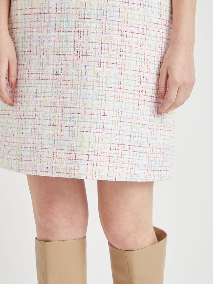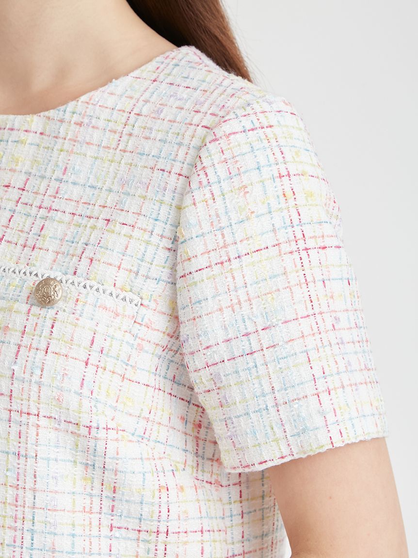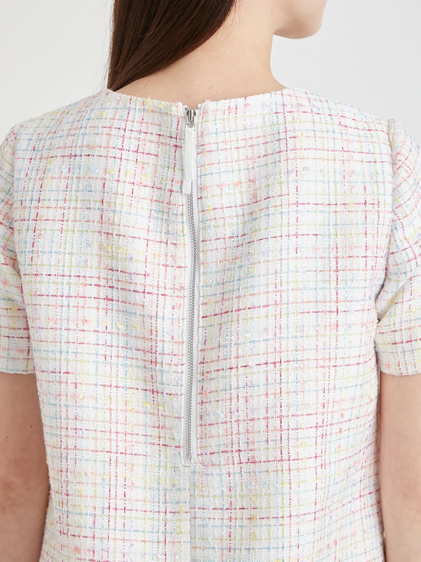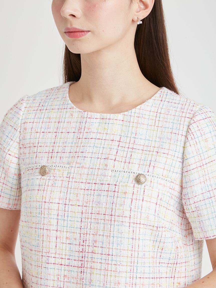 由多種圖案線交織而成的華麗感斜紋軟呢洋裝。