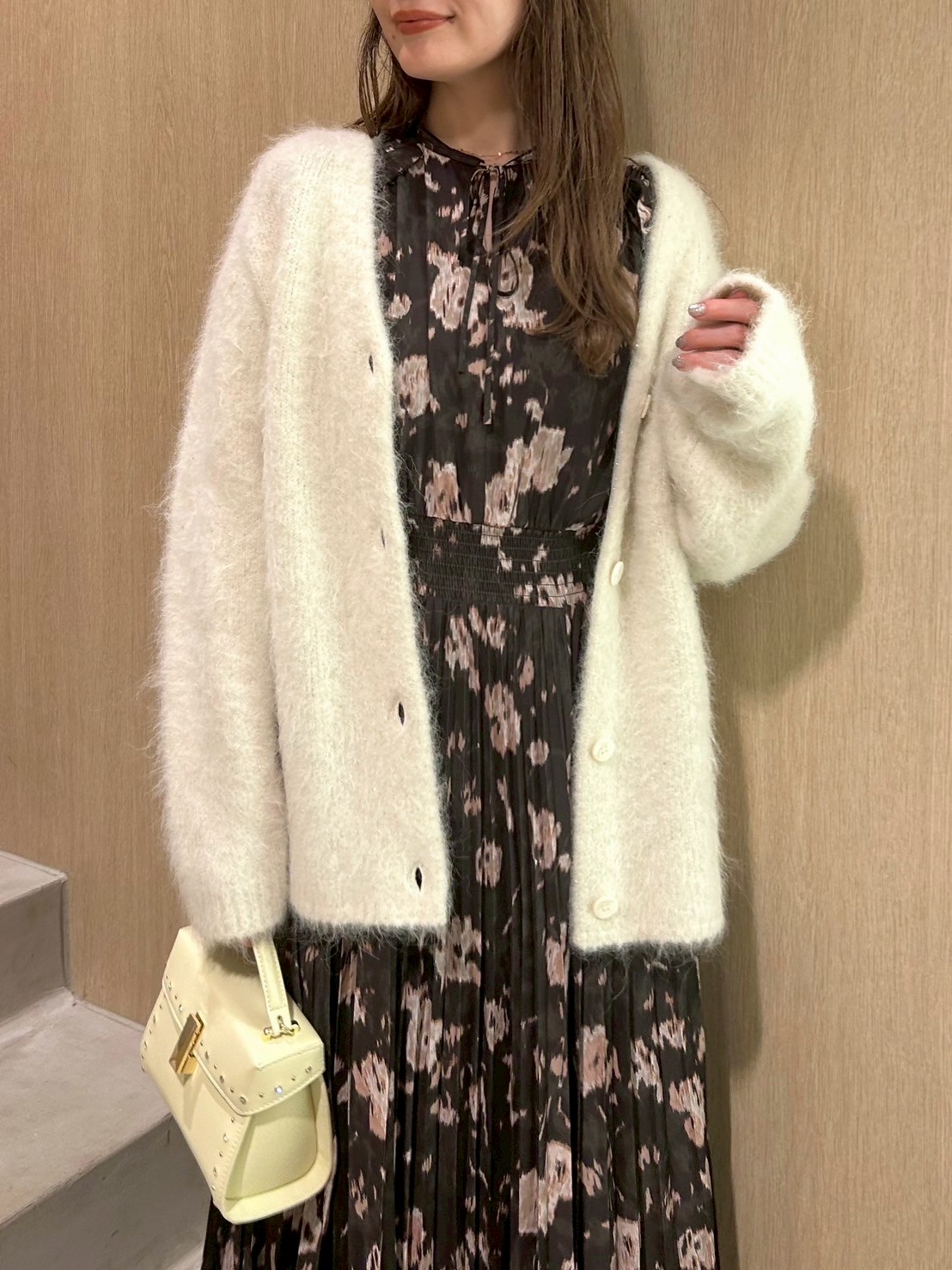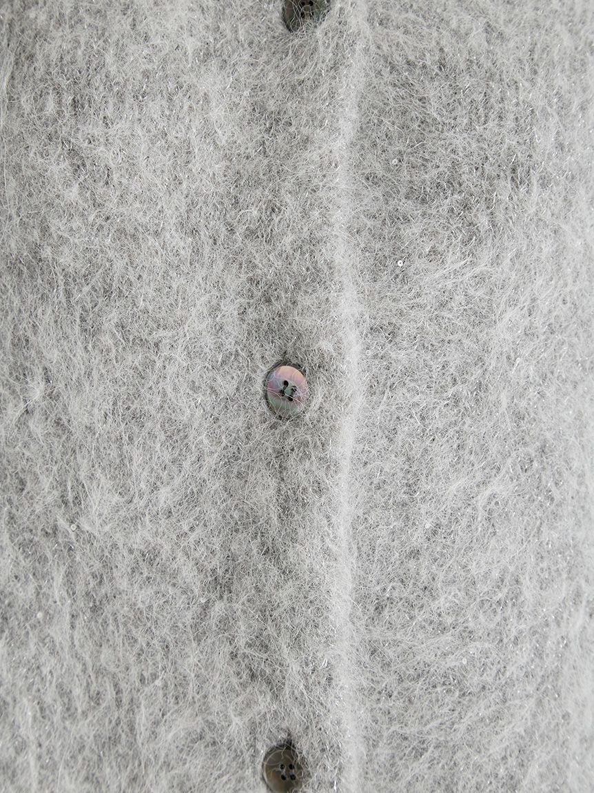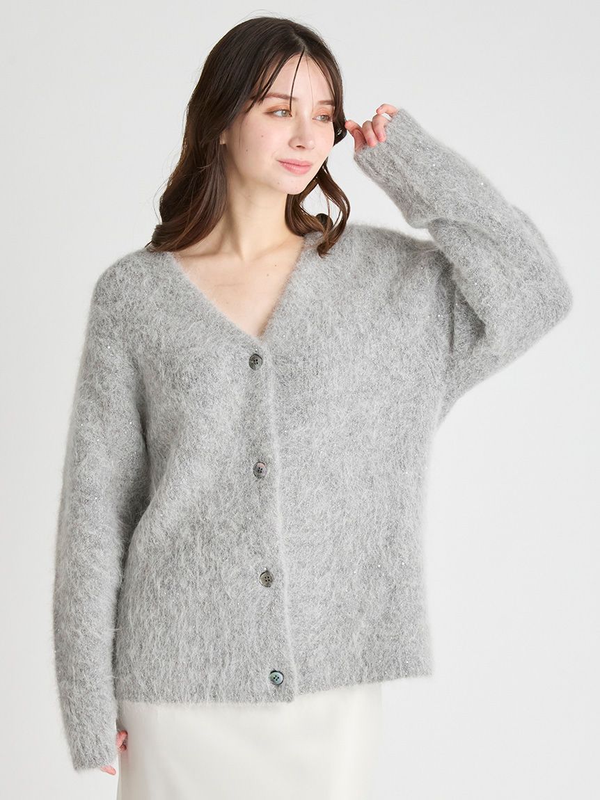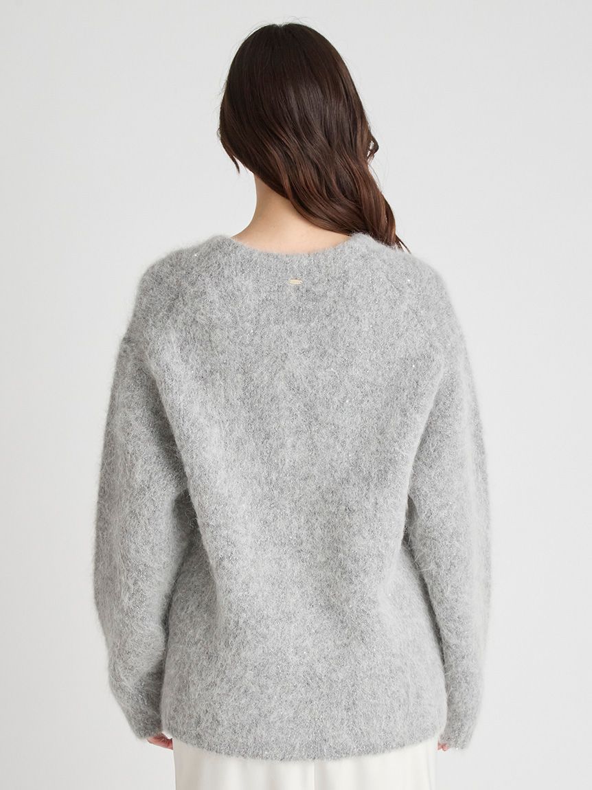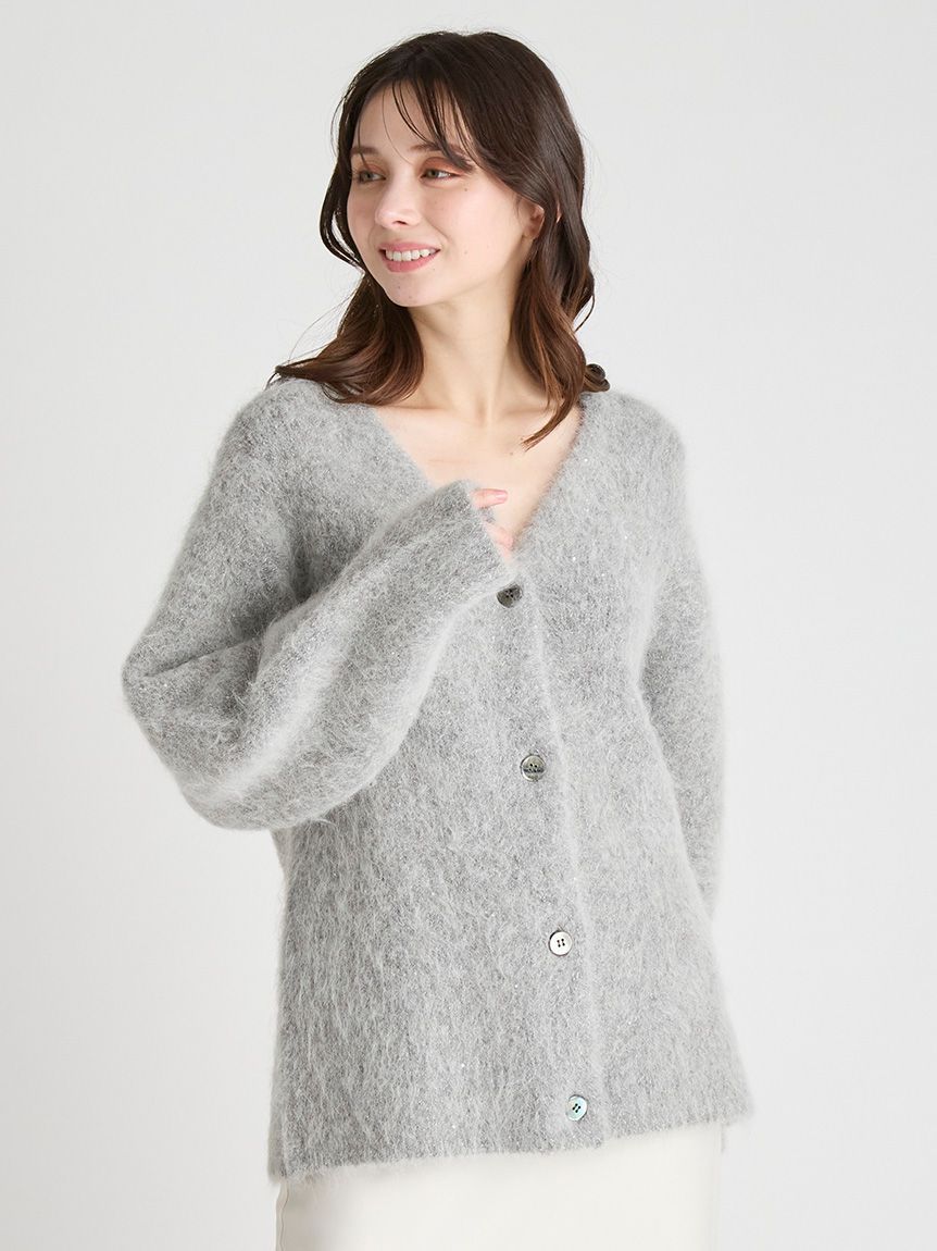 CELFORD經典中長版針織外套,今年以亮片與金線重新詮釋,為節慶季增添華麗氣息。柔軟的羊駝毛線混織迷你亮片與金線,細緻閃爍中帶出高雅質地,並以同色系貝殼釦點綴。