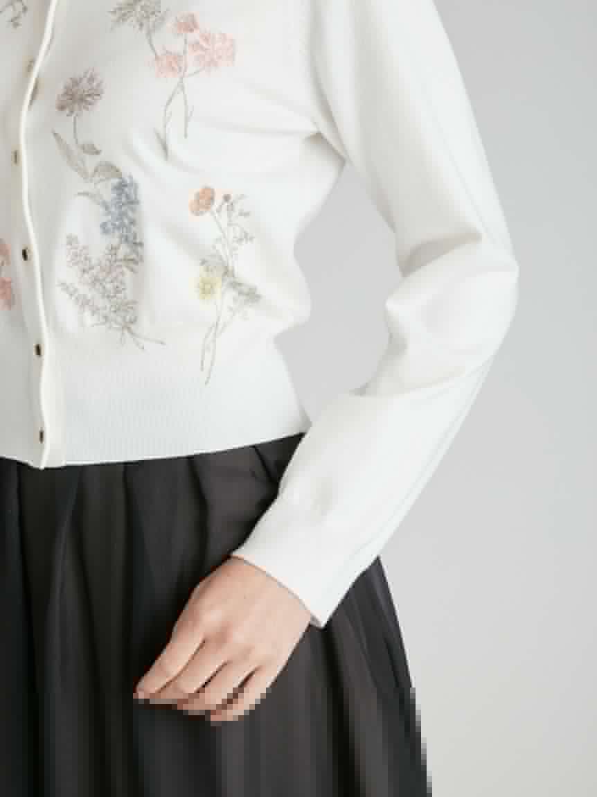 將水仙、罌粟等十種花卉點綴成繽紛奪目的原創花卉圖案,以刺繡工藝呈現於開襟衫上。