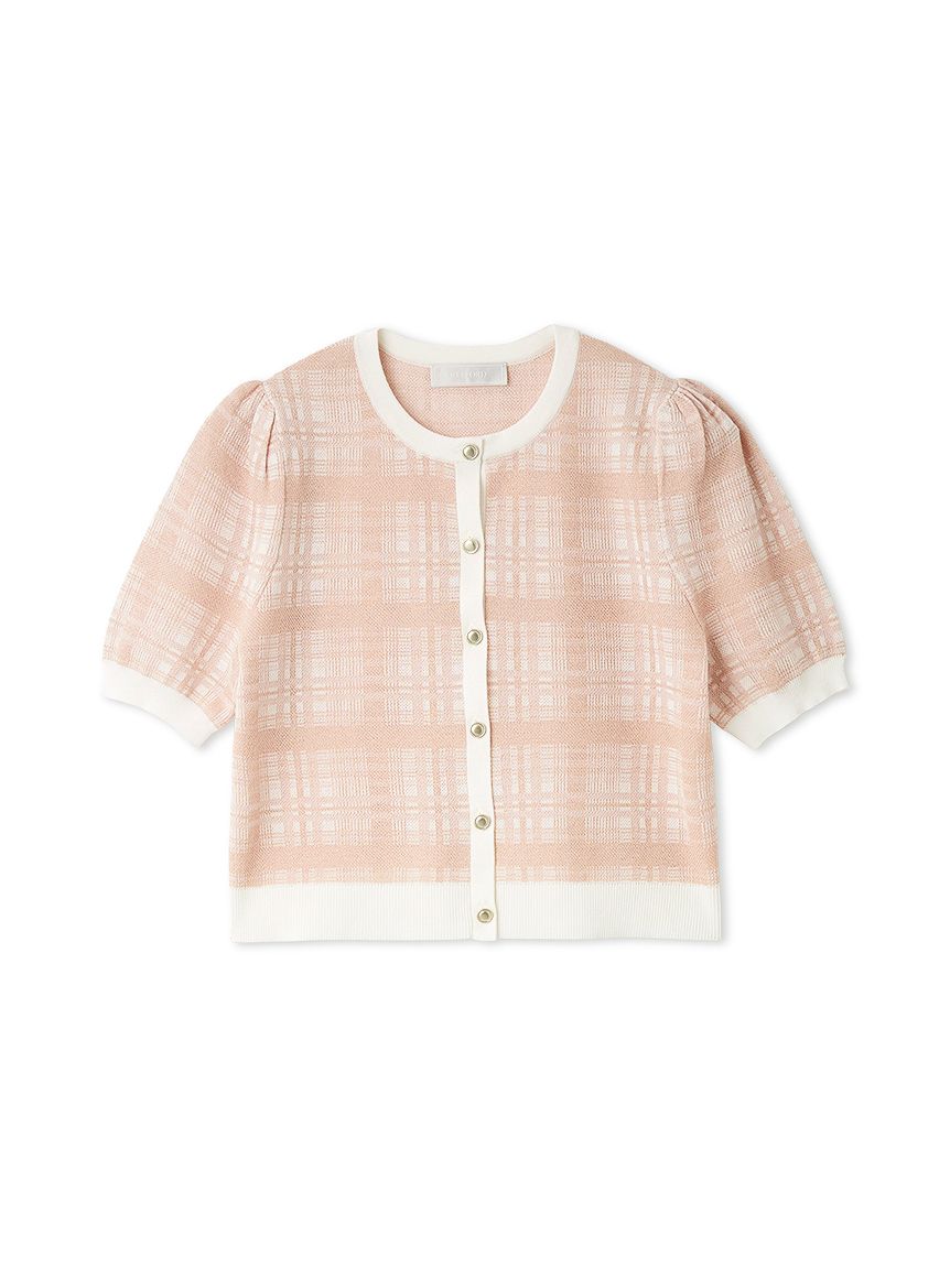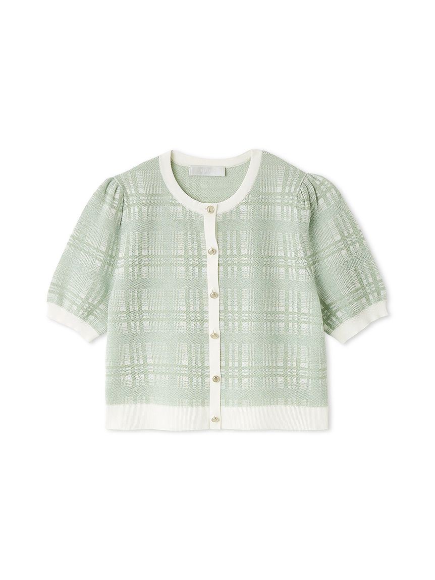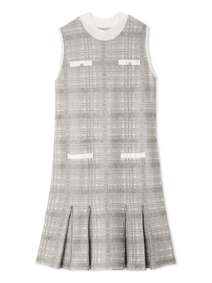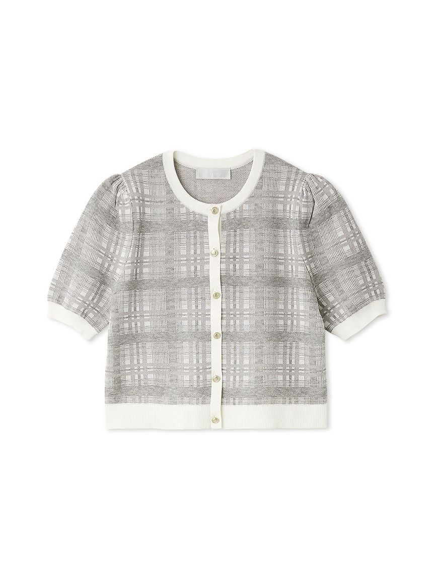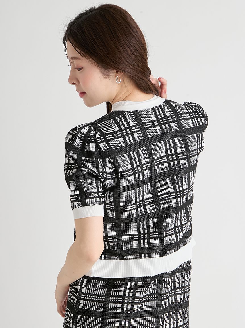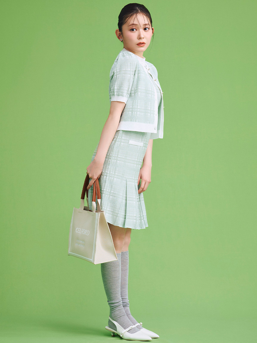 【細緻格紋短袖開襟外套與針織迷你洋裝的SET單品】