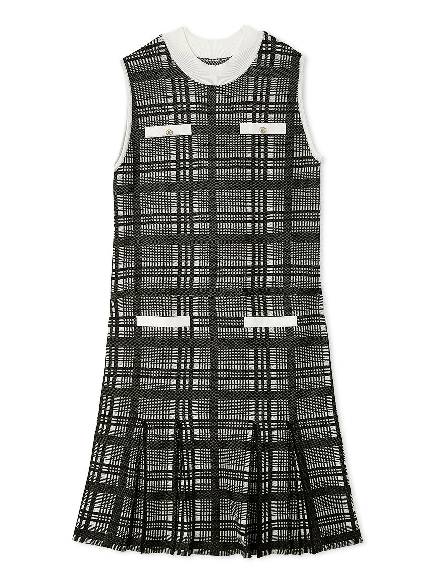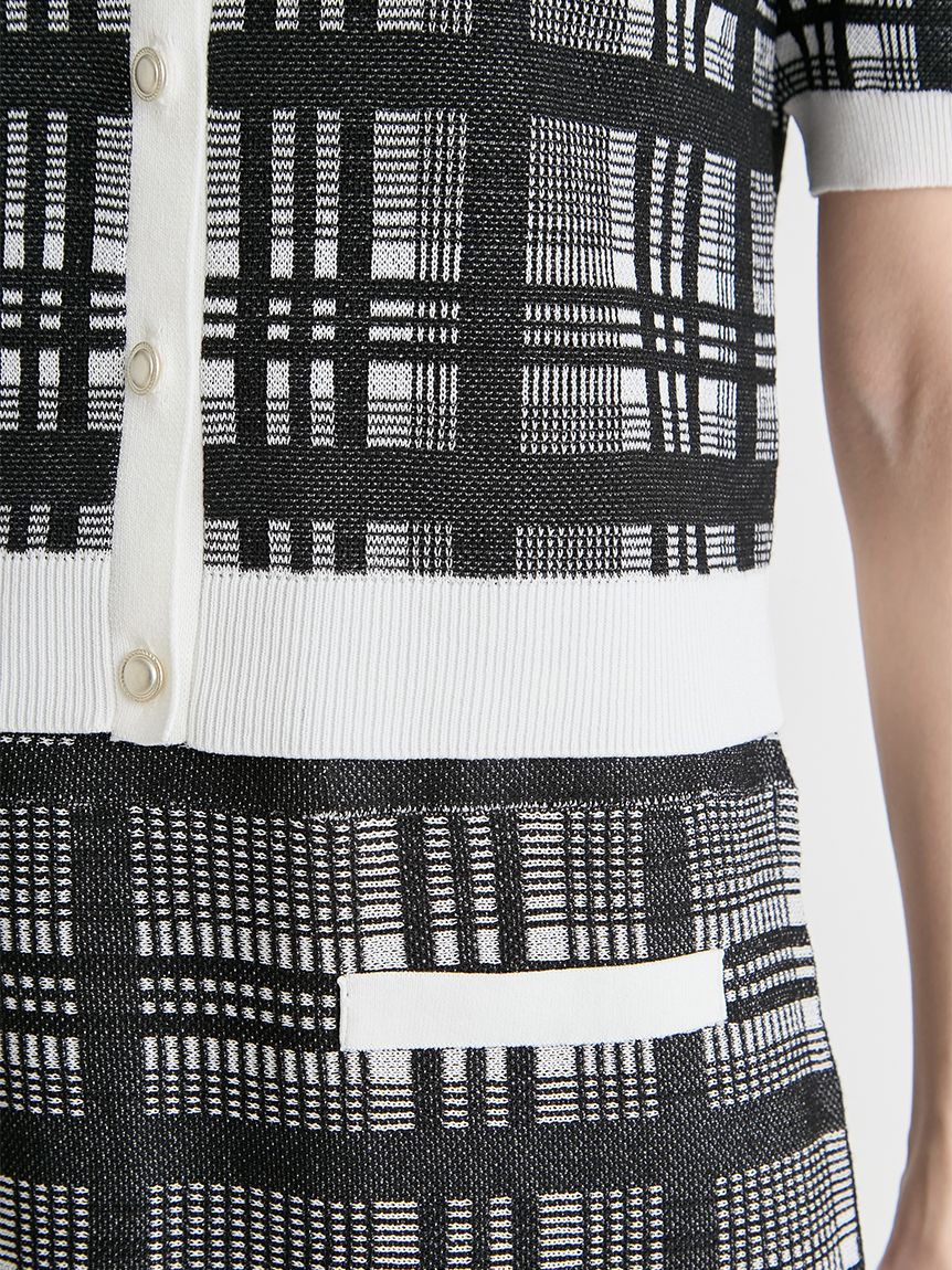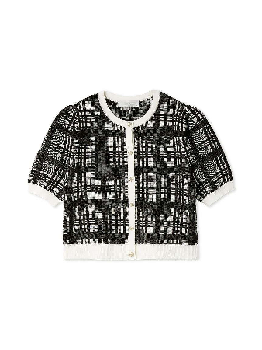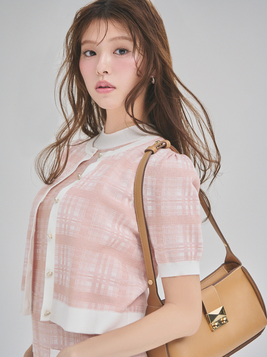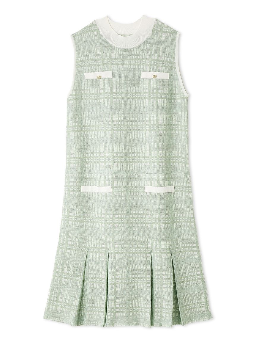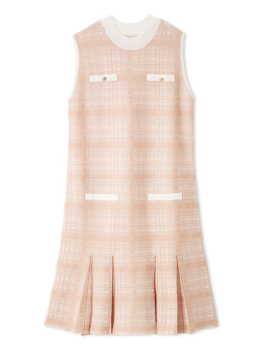 【細緻格紋短袖開襟外套與針織迷你洋裝的SET單品】