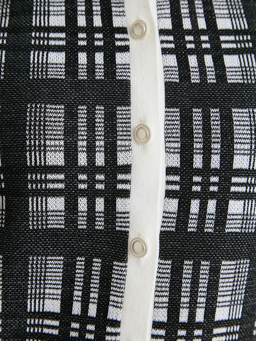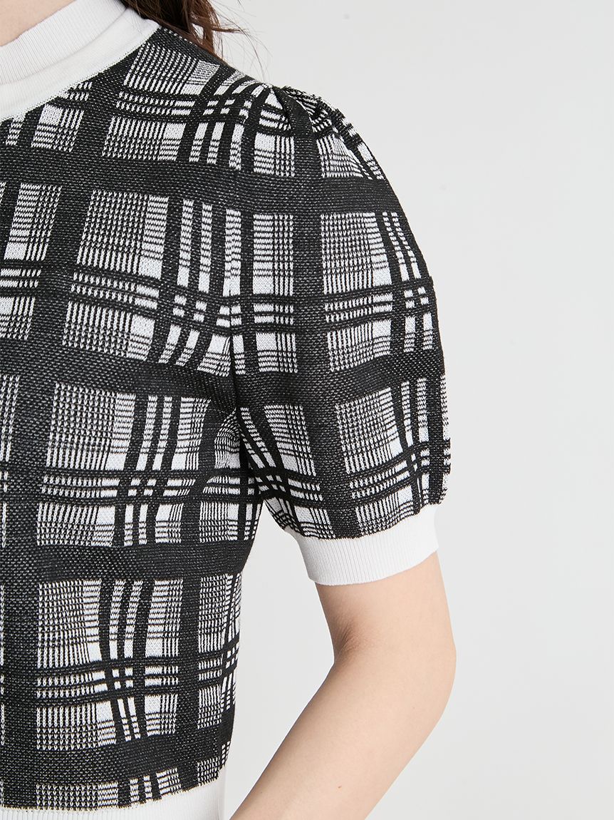 採用兩種紗線,以高針距雙面緹花編織呈現細膩格紋。