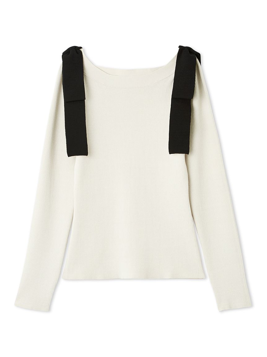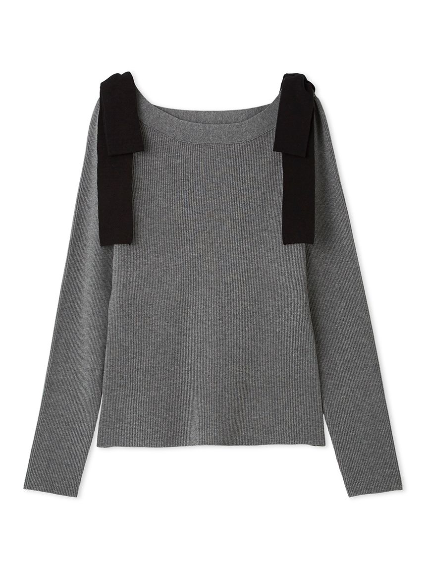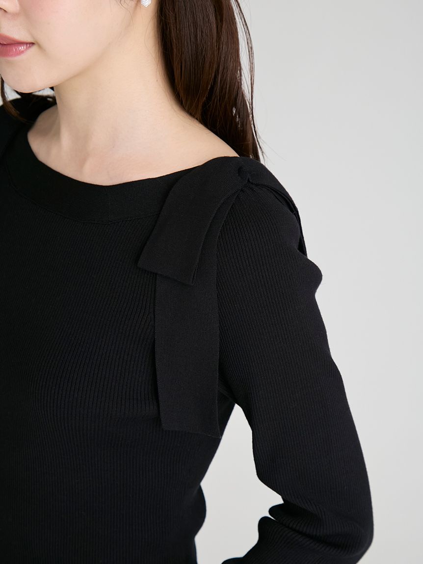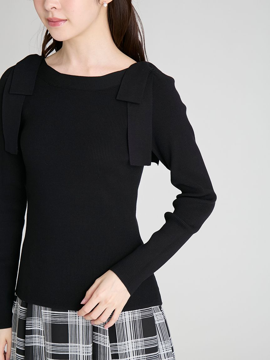 【雙肩點綴的針織蝴蝶結為重點的上衣】