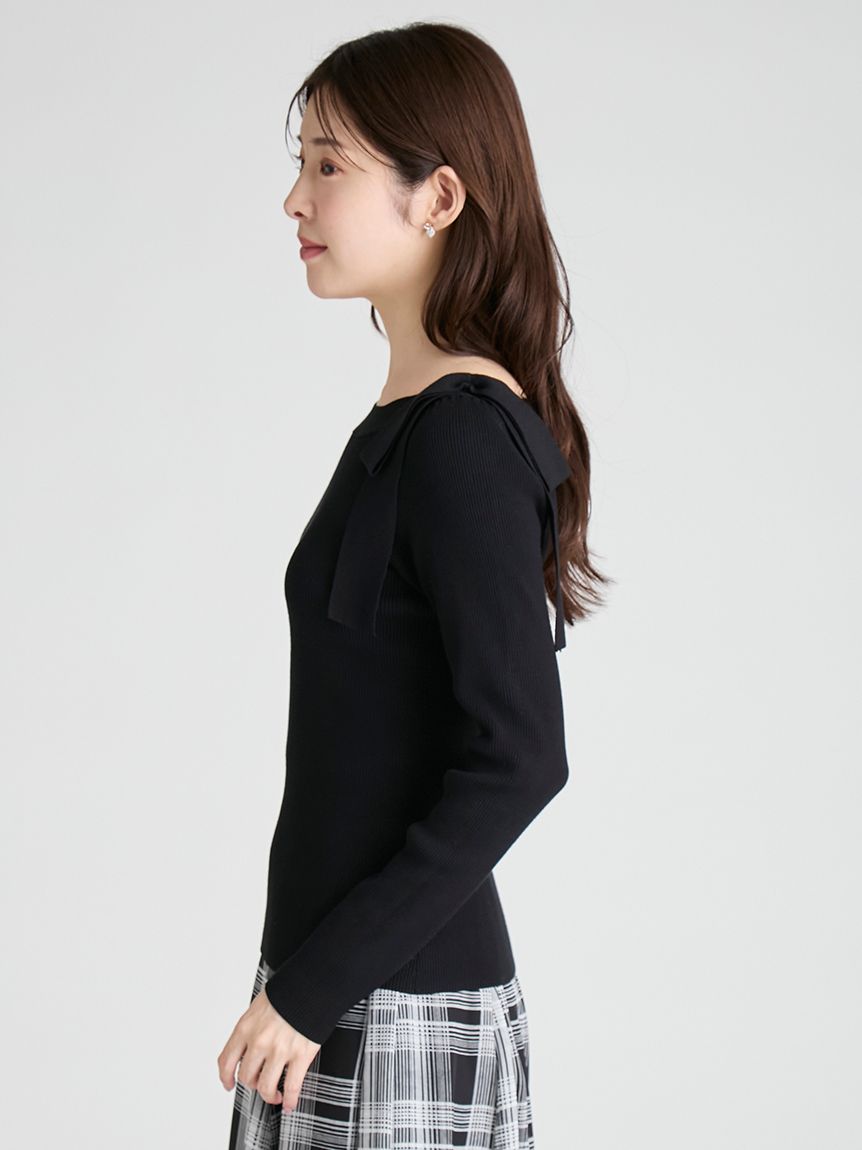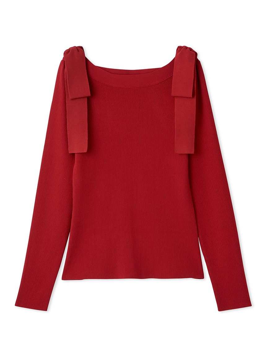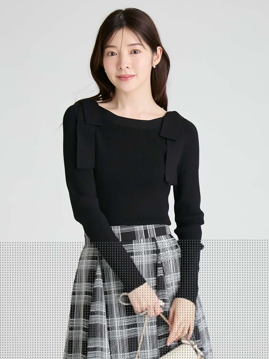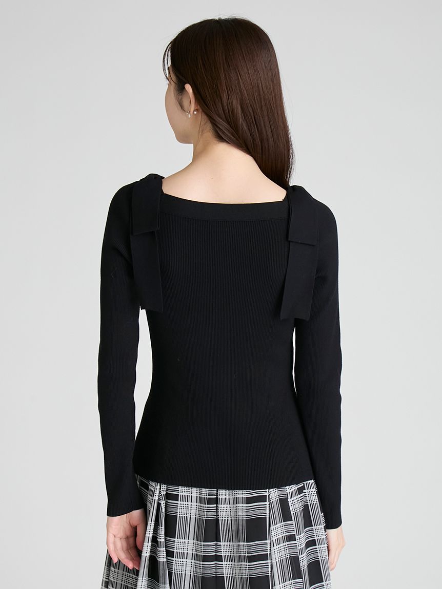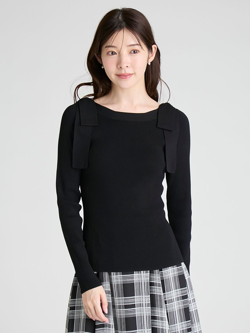 【雙肩點綴的針織蝴蝶結為重點的上衣】