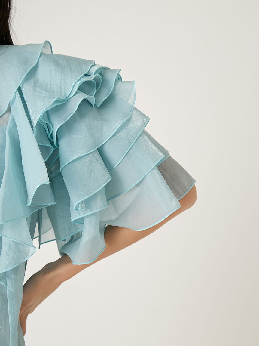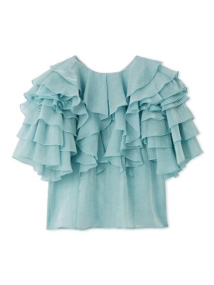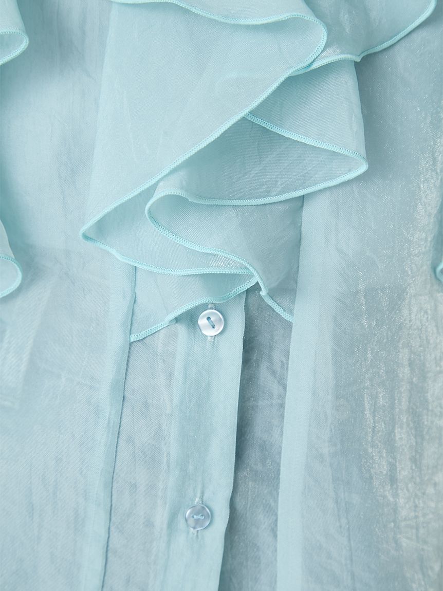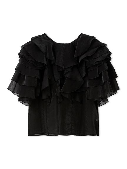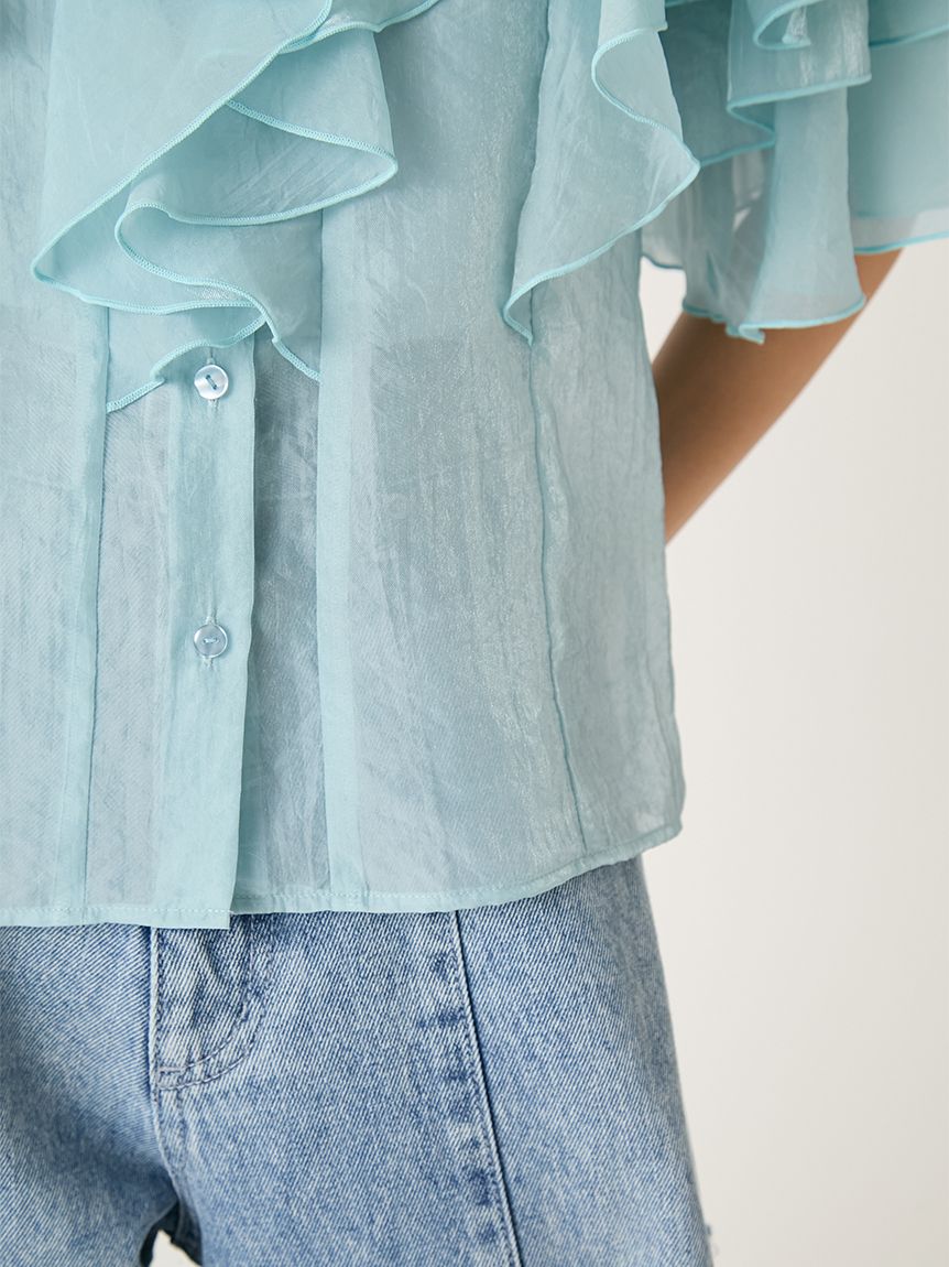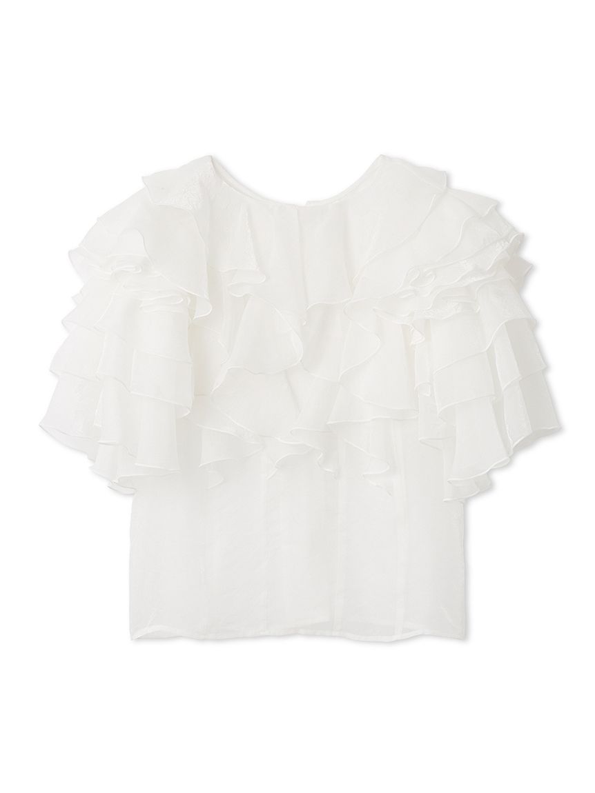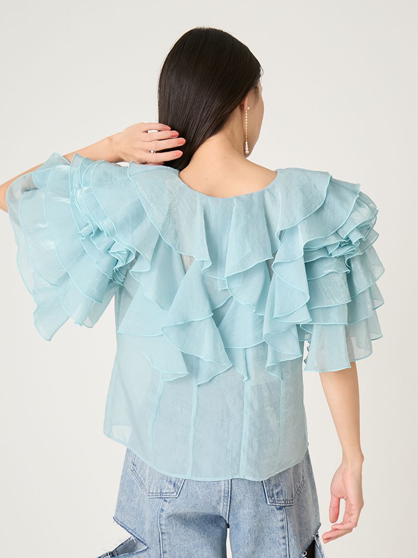 花瓣般層疊的透視荷葉邊襯衫,吸睛十足。