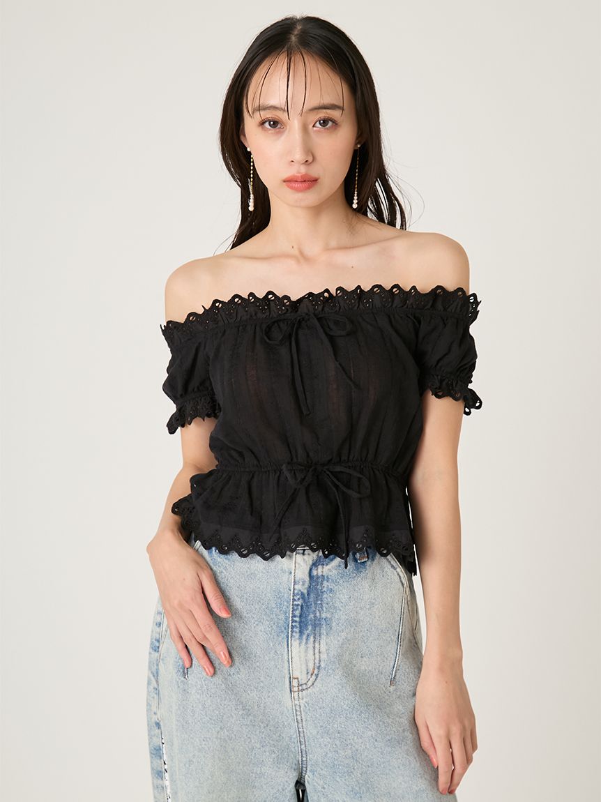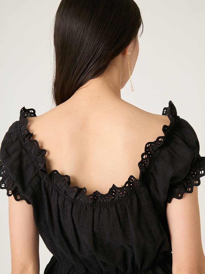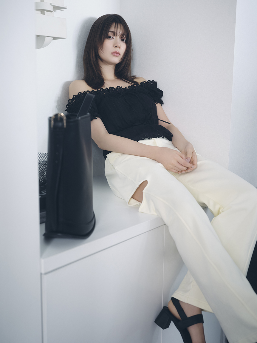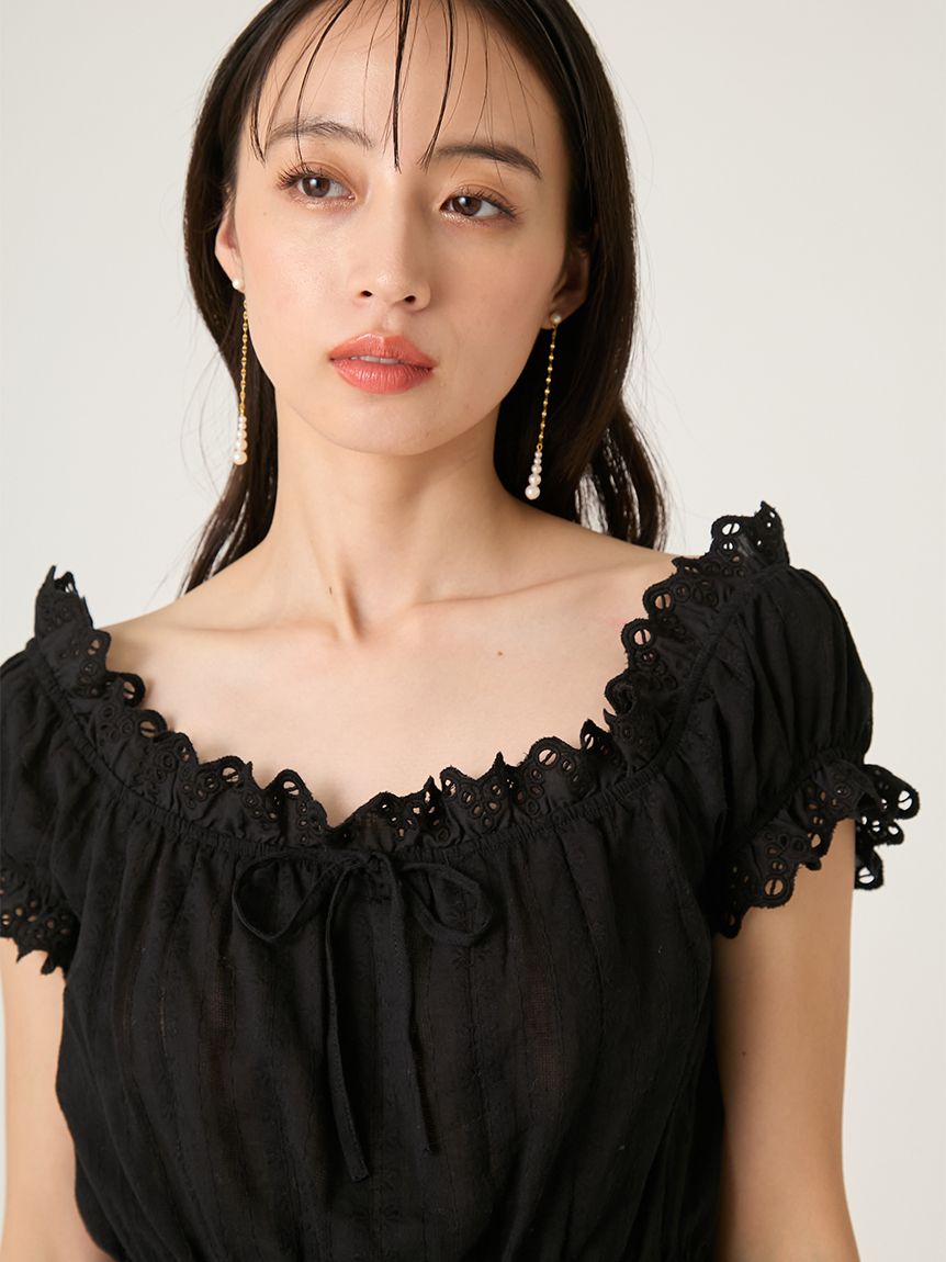 【可2WAY穿著的荷葉蕾絲上衣,一字領也能駕馭】