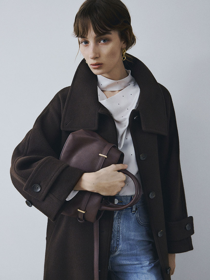 以寬大領口為亮點的巴爾馬坎大衣,簡約中透著精緻品味。