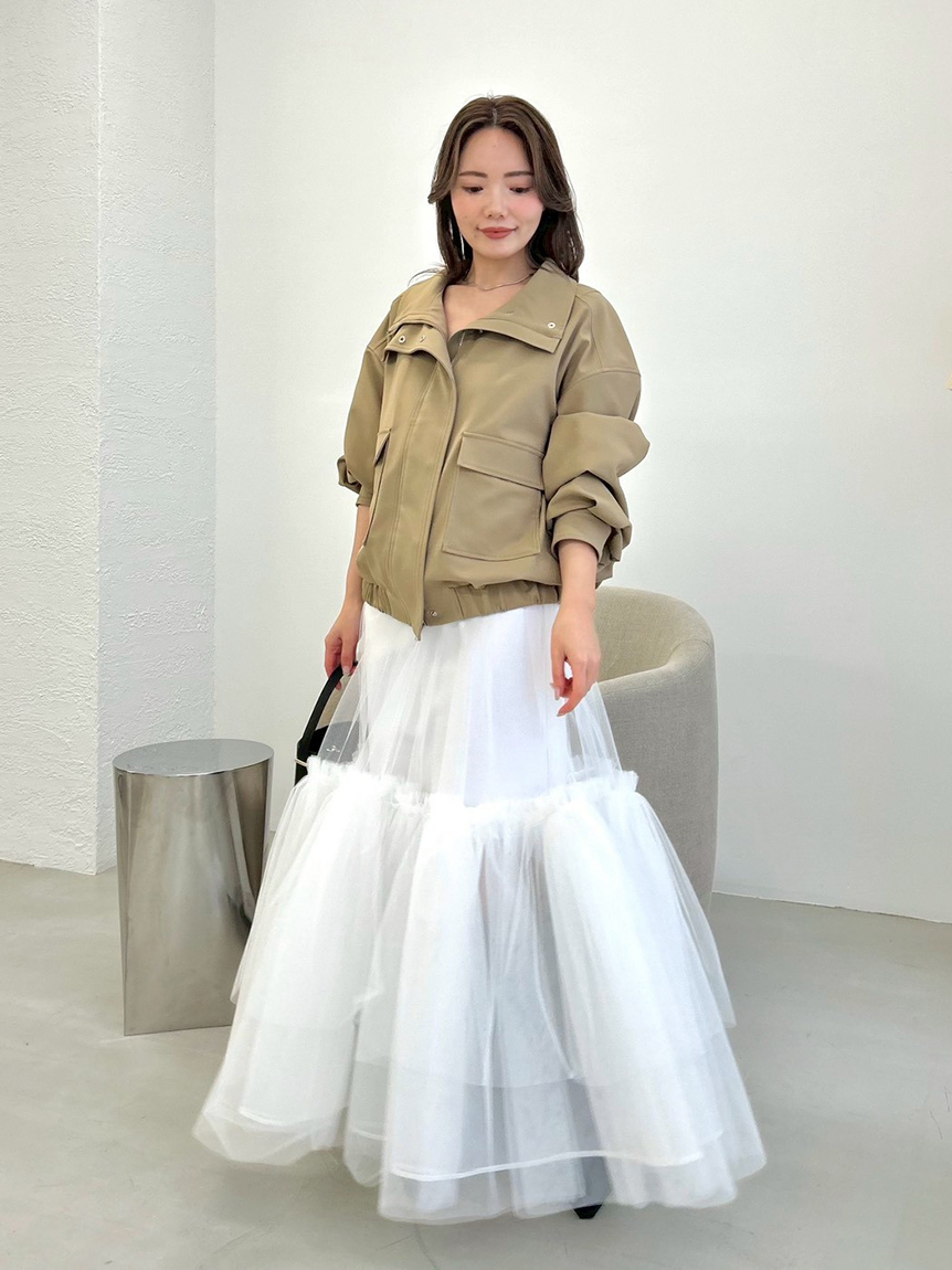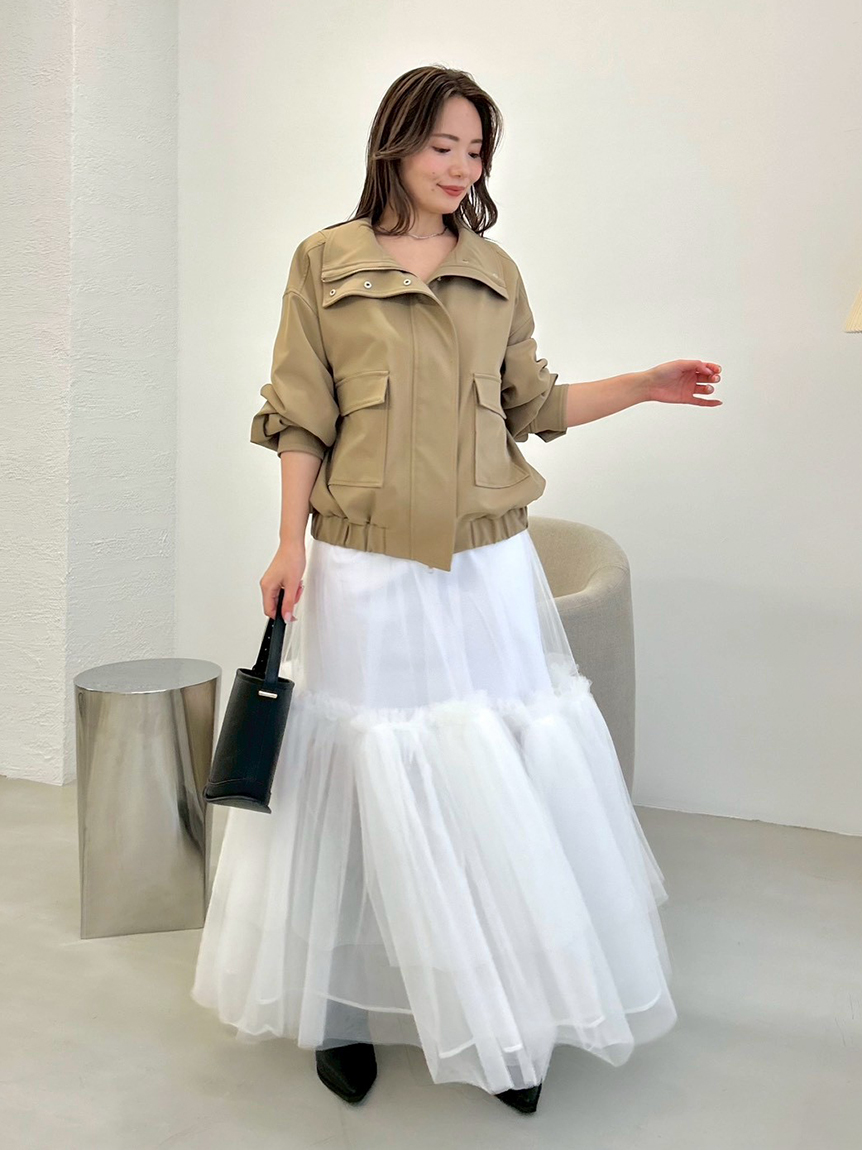為造型增添摩登氛圍的外套,以份量感立領展現時髦存在感。