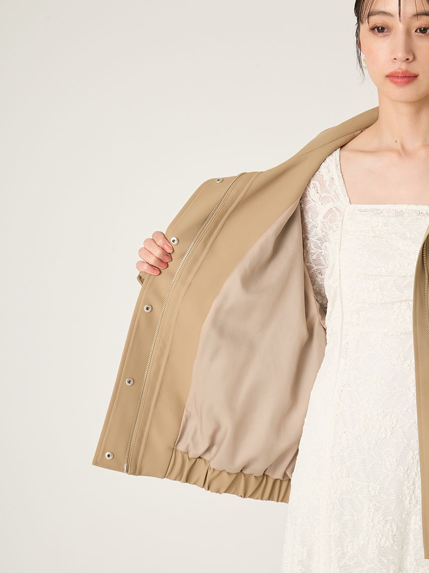 拉鍊微開、將領口翻折,可營造不同表情,增添輕鬆感。
