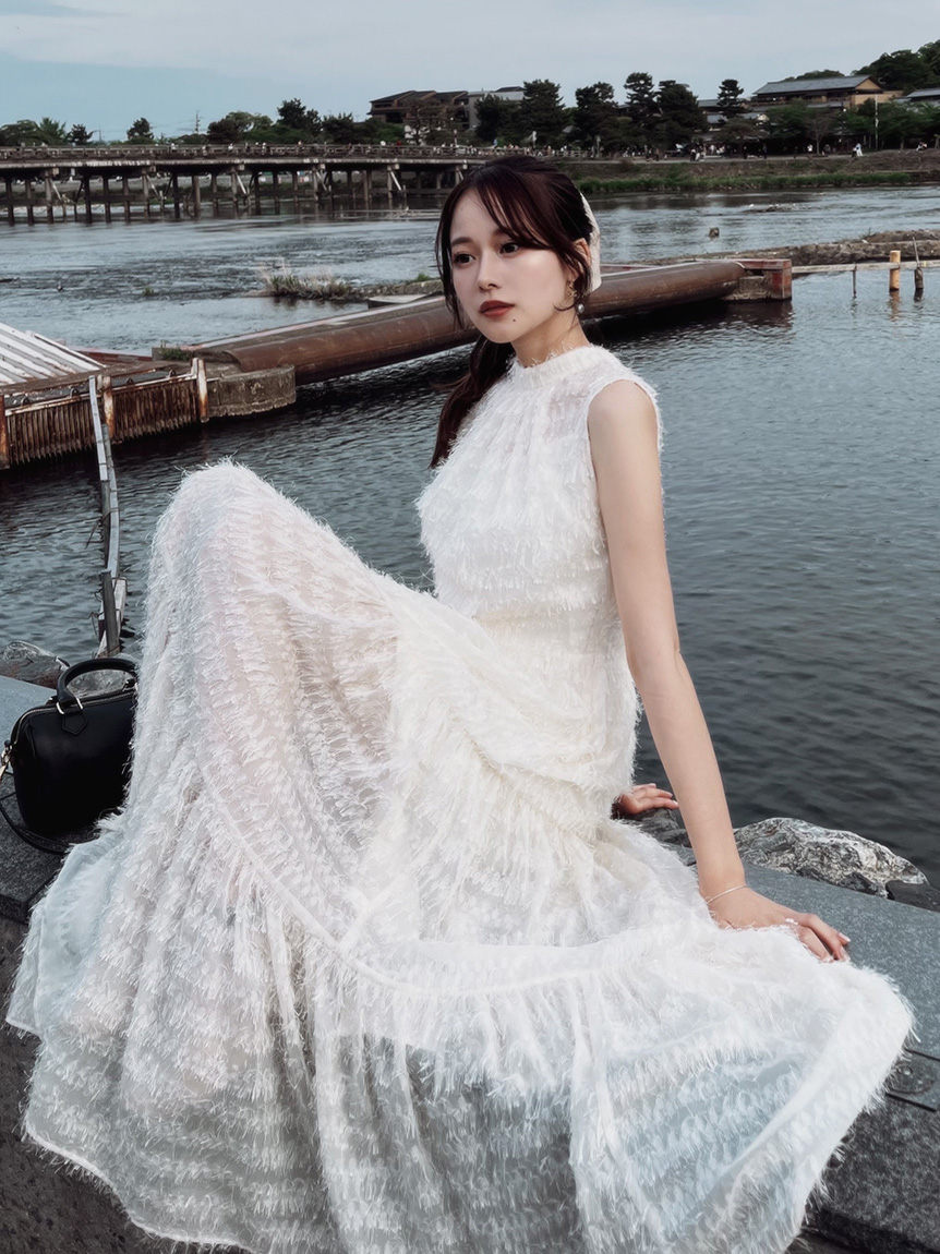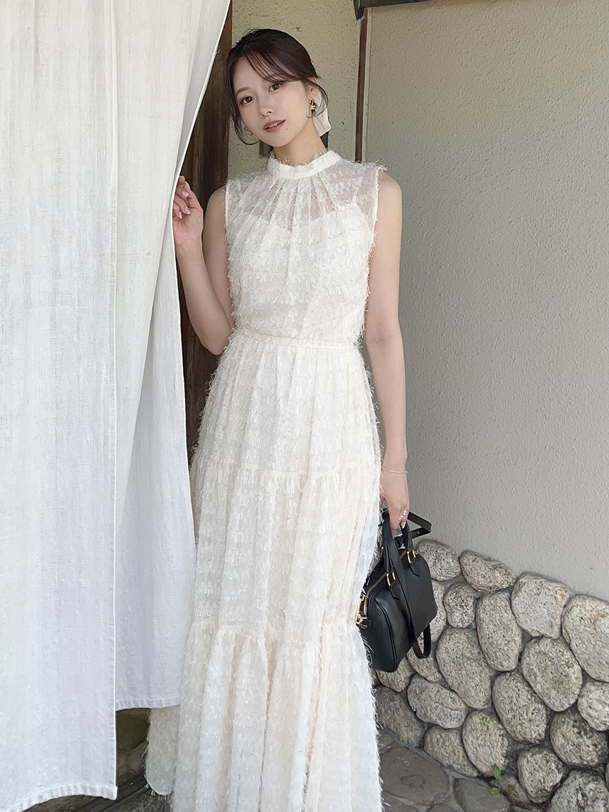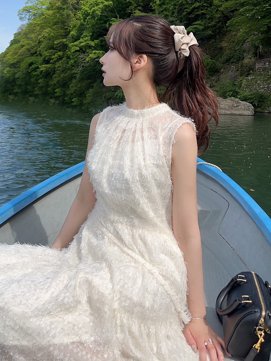 WHT為人氣的流蘇緹花面料,加入細緻亮片絲線,展現高雅質感